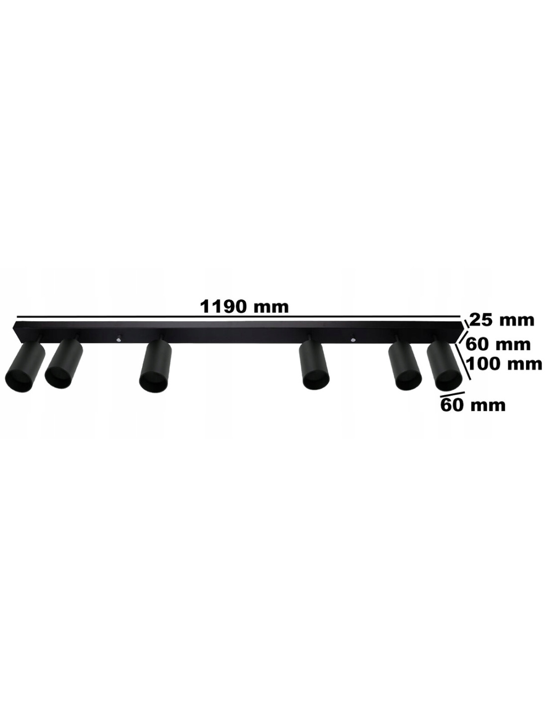 Belka ma wymiary: wysokość/długość 119 cm, głębokość 10 cm oraz szerokość 6 cm. Dodatkowo, źródłem światła są żarówki typu GU10, a maksymalna moc pojedynczego źródła światła wynosi 40W. Należy pamiętać, że źródło światła nie jest dołączone do zestawu, co daje możliwość wyboru najbardziej odpowiednich żarówek, dostosowanych do Twoich potrzeb.