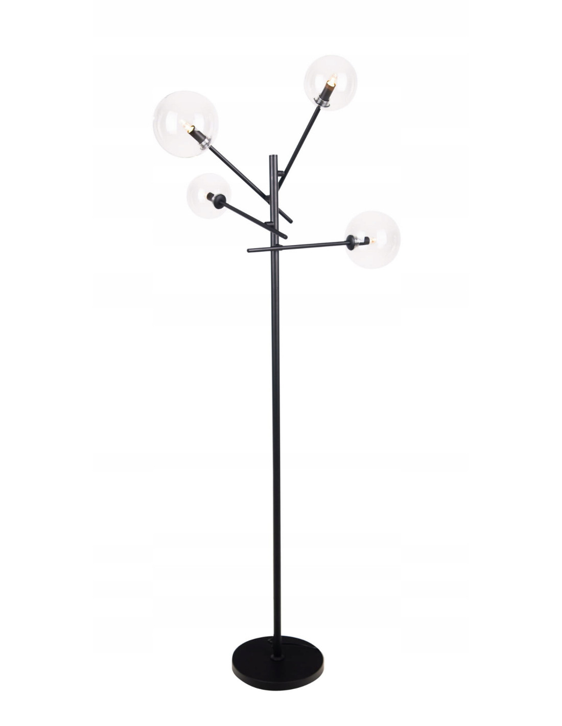 Czarna lampa podłogowa Lollipop to doskonały wybór dla osób, które pragną wprowadzić do swojego wnętrza nowoczesny styl. Dzięki swojemu unikalnemu designowi i szklanym kloszom w kształcie bańki, lampa ta staje się nie tylko źródłem światła, ale także efektowną ozdobą każdego pomieszczenia. Jej wyróżniająca się forma oraz elegancka kolorystyka sprawiają, że idealnie pasuje do wystroju industrialnego oraz minimalistycznego, ale znajdzie swoje miejsce także w wielu innych aranżacjach.