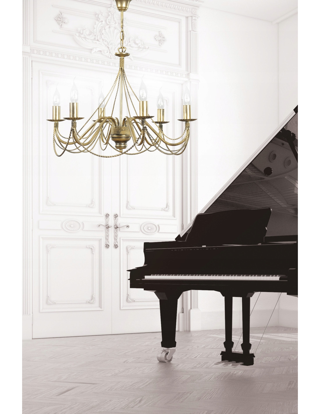 Seria TORI dostępna jest w dwóch eleganckich kolorach: złoconej oliwki oraz bieli, co umożliwia ich dopasowanie do różnych stylów aranżacyjnych. Dzięki temu żyrandol może być idealnie skomponowany z resztą dekoracji w Twoim domu. Jego styl barokowy wprowadza do przestrzeni nutę luksusu, zachwycając każdego gościa i tworząc niezapomniane wrażenie.