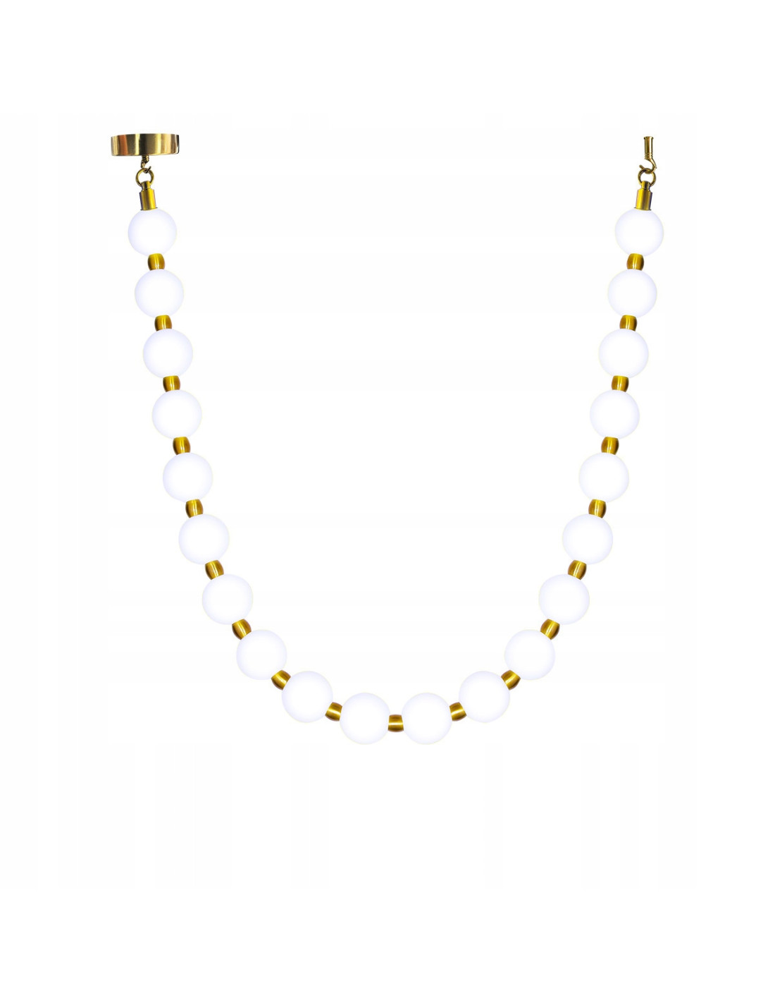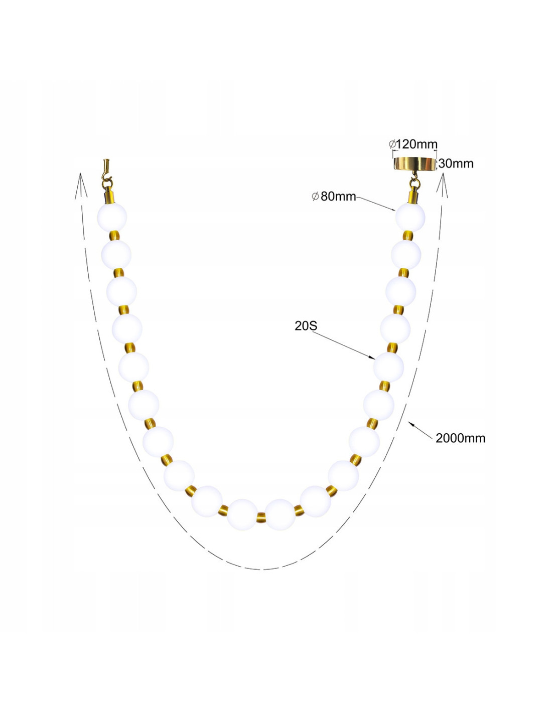 Odkryj Łańcuch eleganckich białych kloszy LED złoto Dorado, wyjątkową lampę, która wprowadza do każdego wnętrza niepowtarzalny urok i nowoczesny styl. Propozycja z kolekcji Dorado łączy elegancję z funkcjonalnością, a jej innowacyjna konstrukcja przypomina subtelną linę, na której zawieszone są piękne, okrągłe klosze z akrylu. Dzięki temu lampa idealnie wkomponowuje się w różnorodne aranżacje, zarówno w przestrzeniach mieszkalnych, jak i komercyjnych.