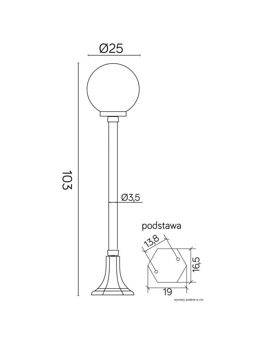 Wysokość 103 cm oraz średnica klosza wynosząca 25 cm sprawiają, że słupek doskonale rozświetli chodniki, ścieżki, trawniki oraz ogrody. Zastosowanie źródła światła E27 o mocy 60W gwarantuje wydajne oświetlenie, a jego wymienne źródło światła zapewnia praktyczność i komfort użytkowania. Niezależnie od pory roku, KULE będzie nie tylko źródłem światła, ale również ozdobą Twojego otoczenia.