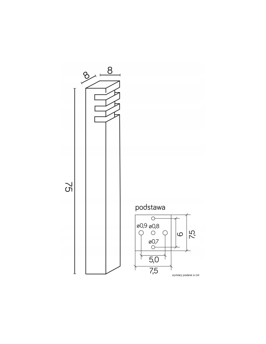 Lampa stoi na wysokości 75 cm, co czyni ją idealnym wyborem do podświetlania ścieżek, wjazdów do garażu czy innych punktów wymagających estetycznego doświetlenia. Wykonana z aluminium, charakteryzuje się dużą odpornością na warunki atmosferyczne i długowiecznością, dzięki czemu będzie służyła przez wiele sezonów.