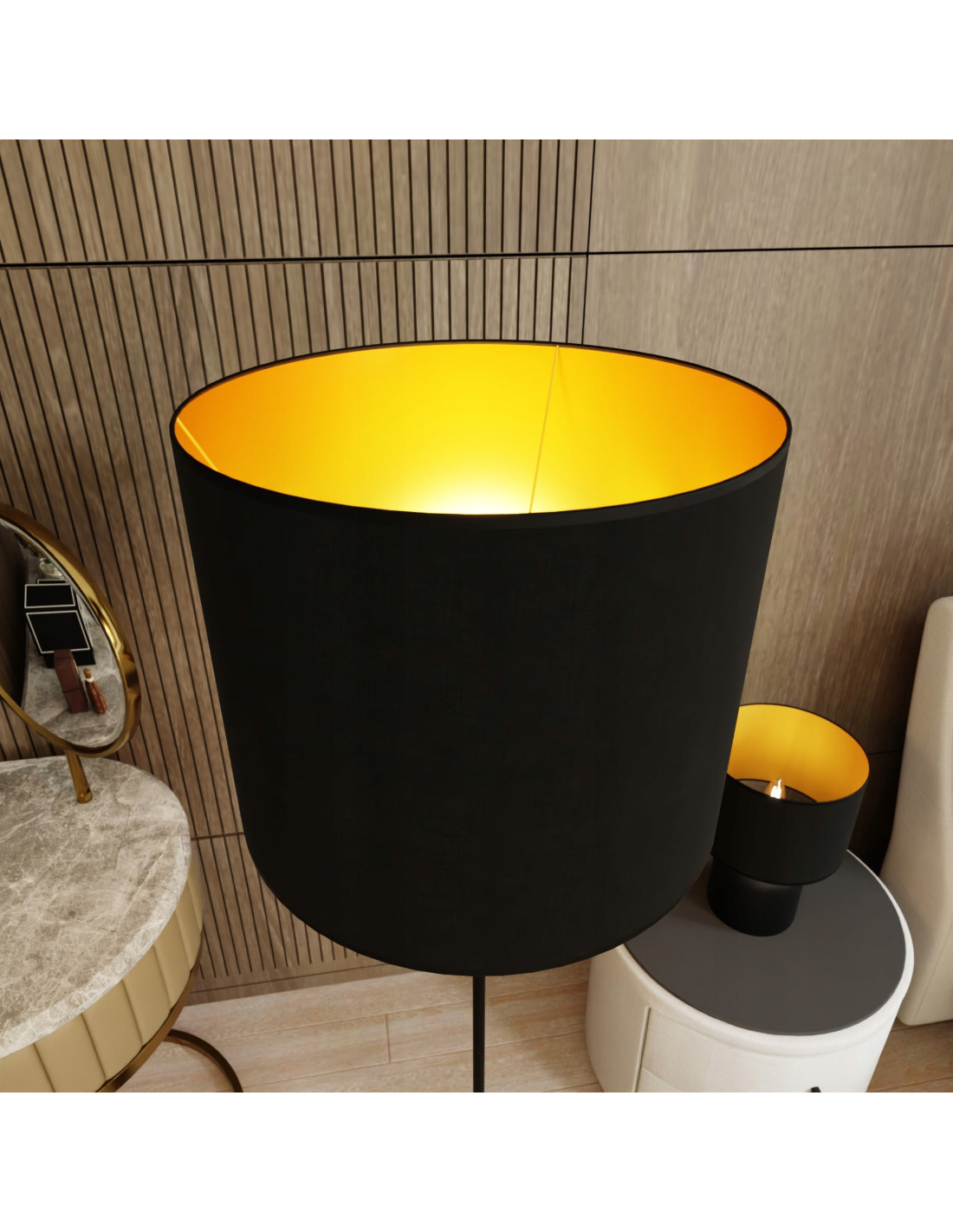 Lampa podłogowa ASPEN to wyjątkowy element oświetleniowy, który doskonale wpisuje się w charakter nowoczesnych wnętrz. Jej czarna kolorystyka w połączeniu z złotym abażurem wewnątrz tworzy harmonijną całość, której subtelność i elegancja przyciągają uwagę. To idealna propozycja nie tylko do sypialni, ale również do biur, jadalni, czy salonów, wprowadzając do każdego pomieszczenia wyjątkową atmosferę.
