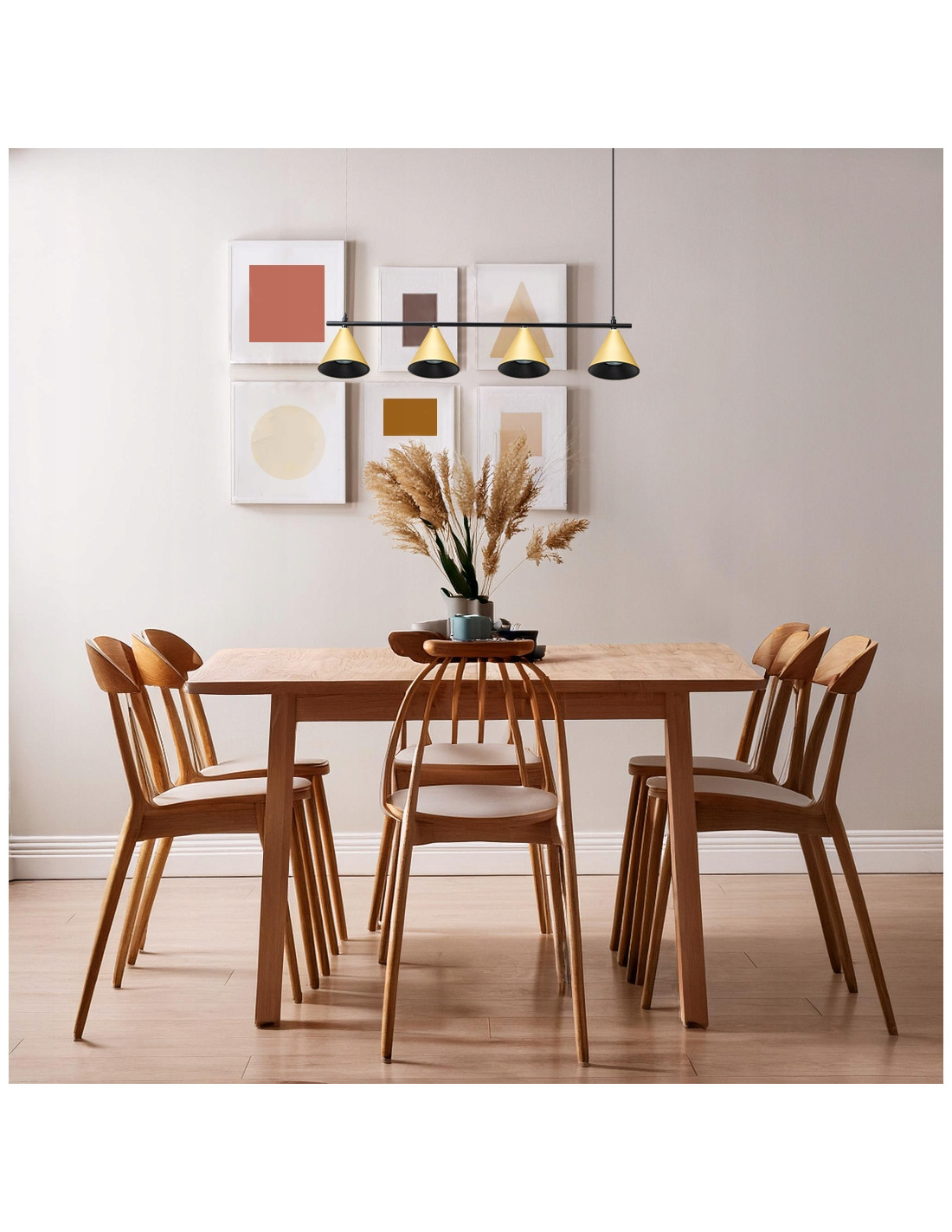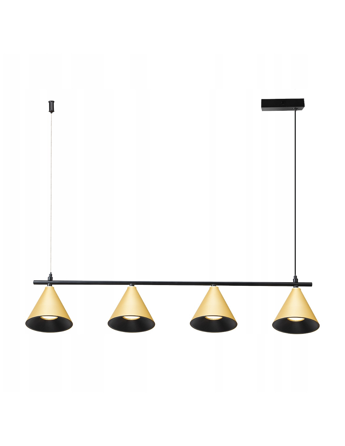 Długa listwa nad stół z 4 reflektorami w eleganckim złotym wykończeniu to idealne rozwiązanie dla osób pragnących wprowadzić nowoczesny i luksusowy charakter do swojego wnętrza. Kolekcja Opraw Cone oferuje stylowe i funkcjonalne możliwości oświetleniowe, które doskonale sprawdzą się w kuchni, salonach oraz holach. Dzięki zastosowaniu wysokiej jakości materiałów, każdy element lampy wyróżnia się trwałością oraz estetycznym wyglądem na długie lata.