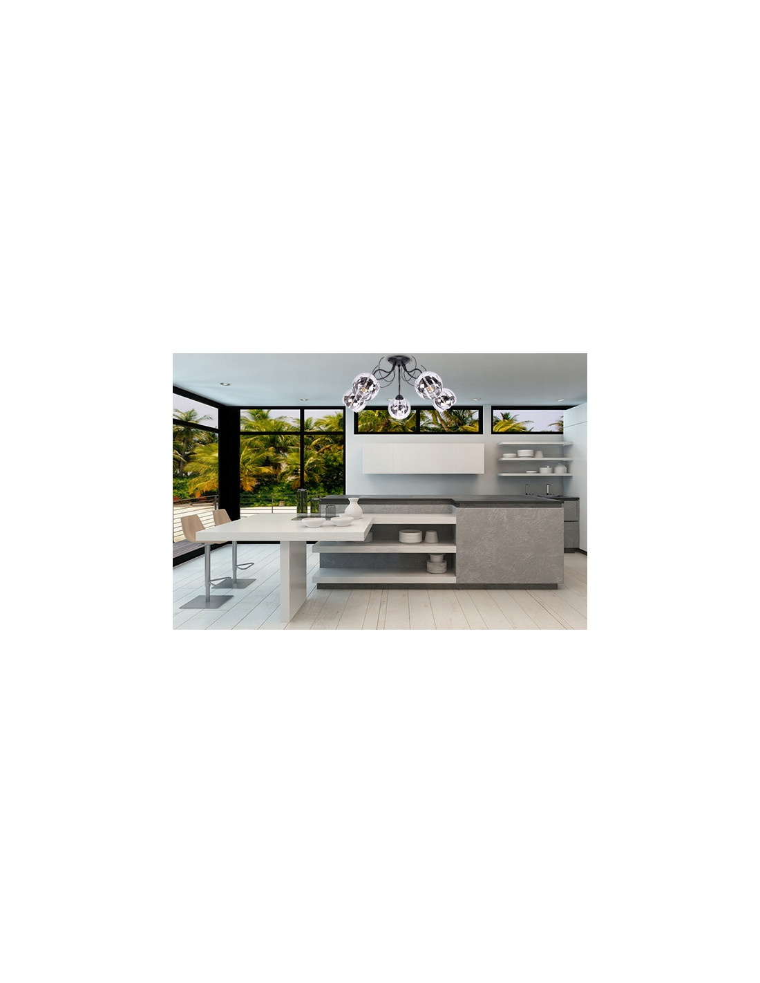 Odkryj lampę sufitową ELIZA, która łączy nowoczesny design z elegancją, idealnie wpasowując się w różnorodne style wystroju wnętrz. Jej oryginalne klosze pokryte chromowanymi paskami nadają jej niepowtarzalnego charakteru, co sprawia, że staje się nie tylko źródłem światła, ale również imponującą dekoracją Twojego domu.