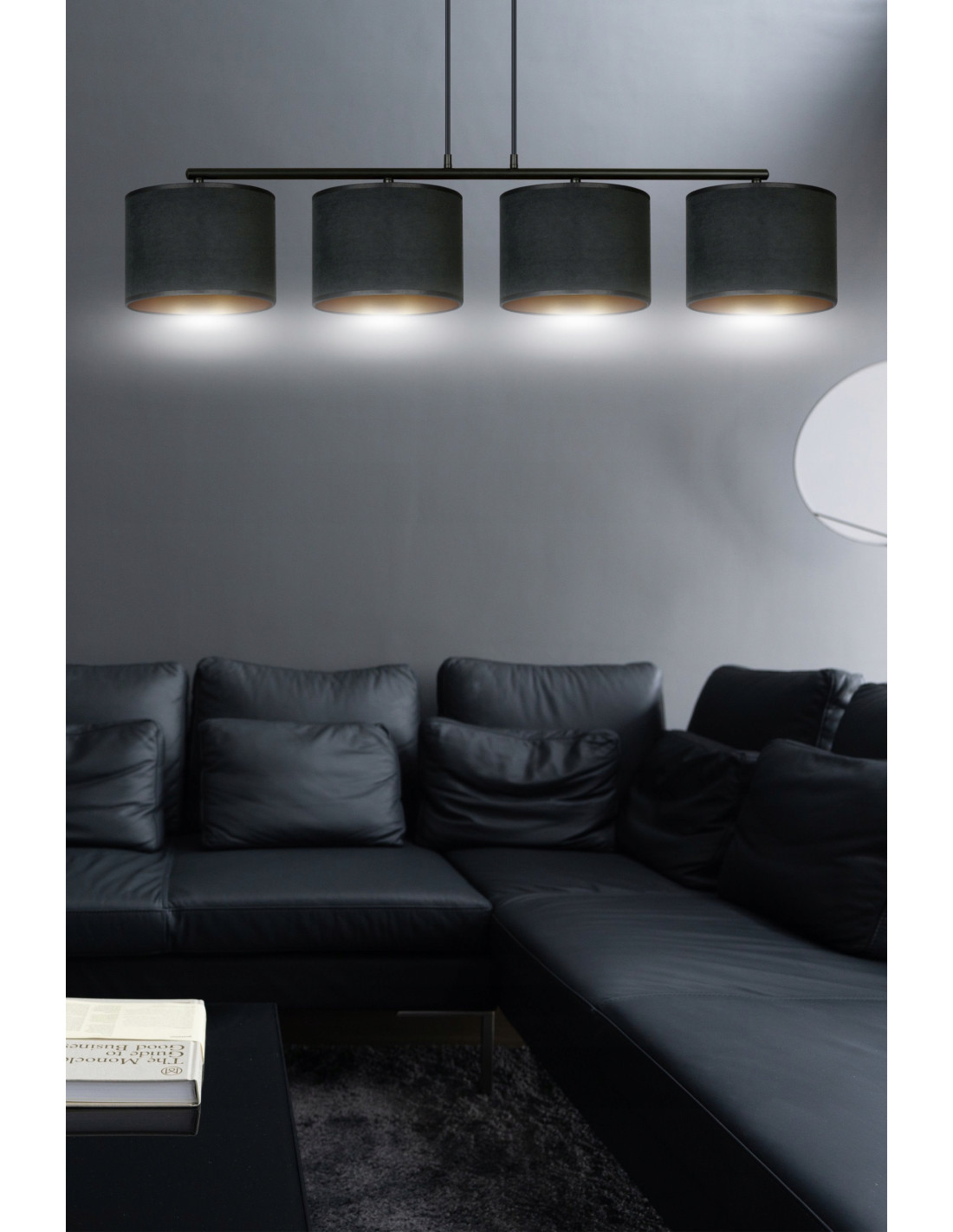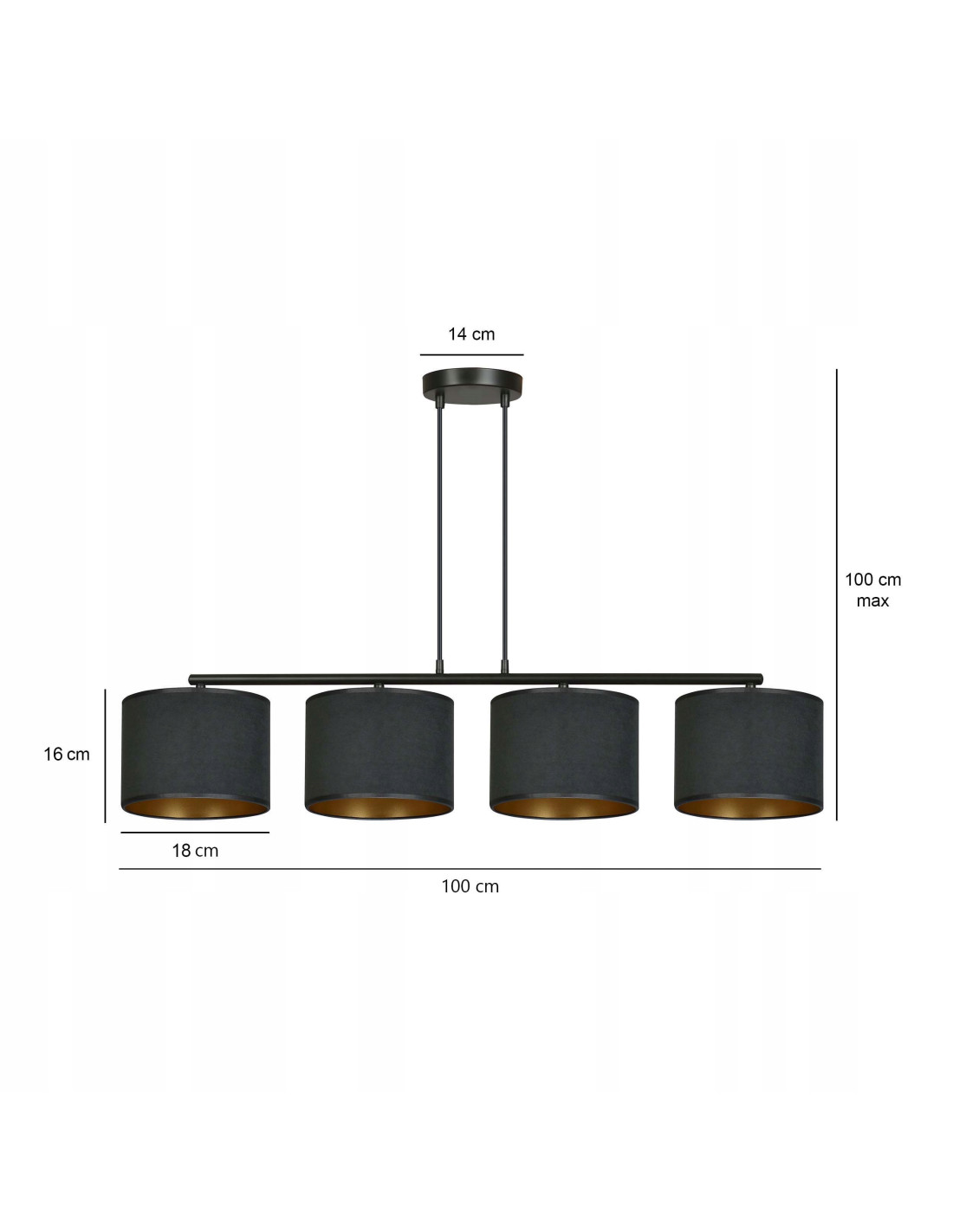 Odkryj klasyczną lampę nad szeroki narożnik HILDE 4 BL w kolorze czarnym i złotym, która doda elegancji Twojemu wnętrzu. Ta lampa abażurowa łączy w sobie nowoczesny design z klasycznymi akcentami, sprawiając, że jest idealnym uzupełnieniem zarówno nowoczesnych, jak i tradycyjnych aranżacji.