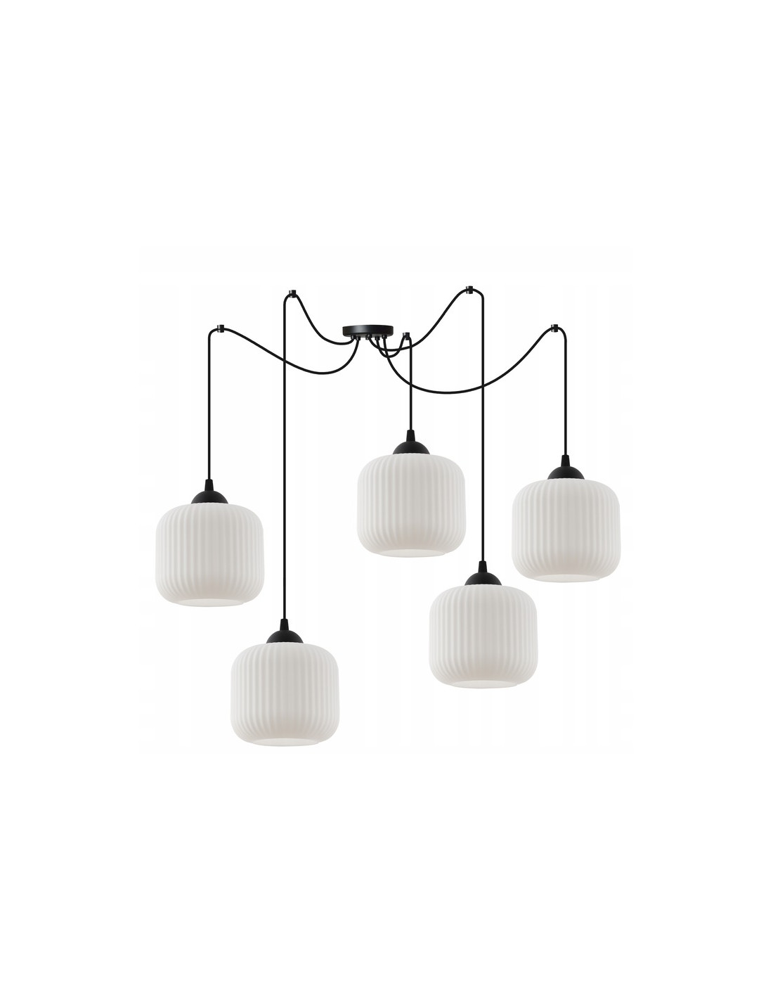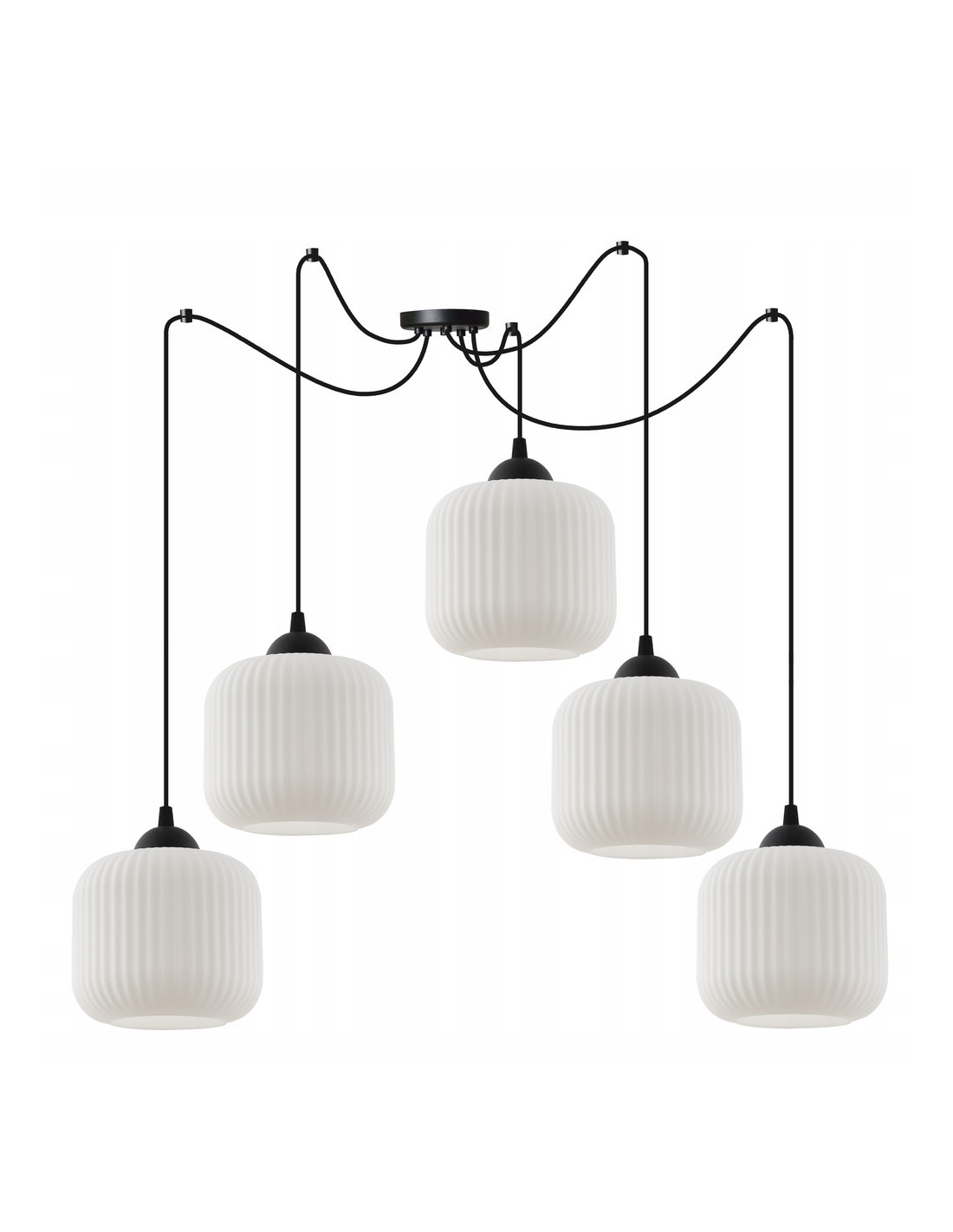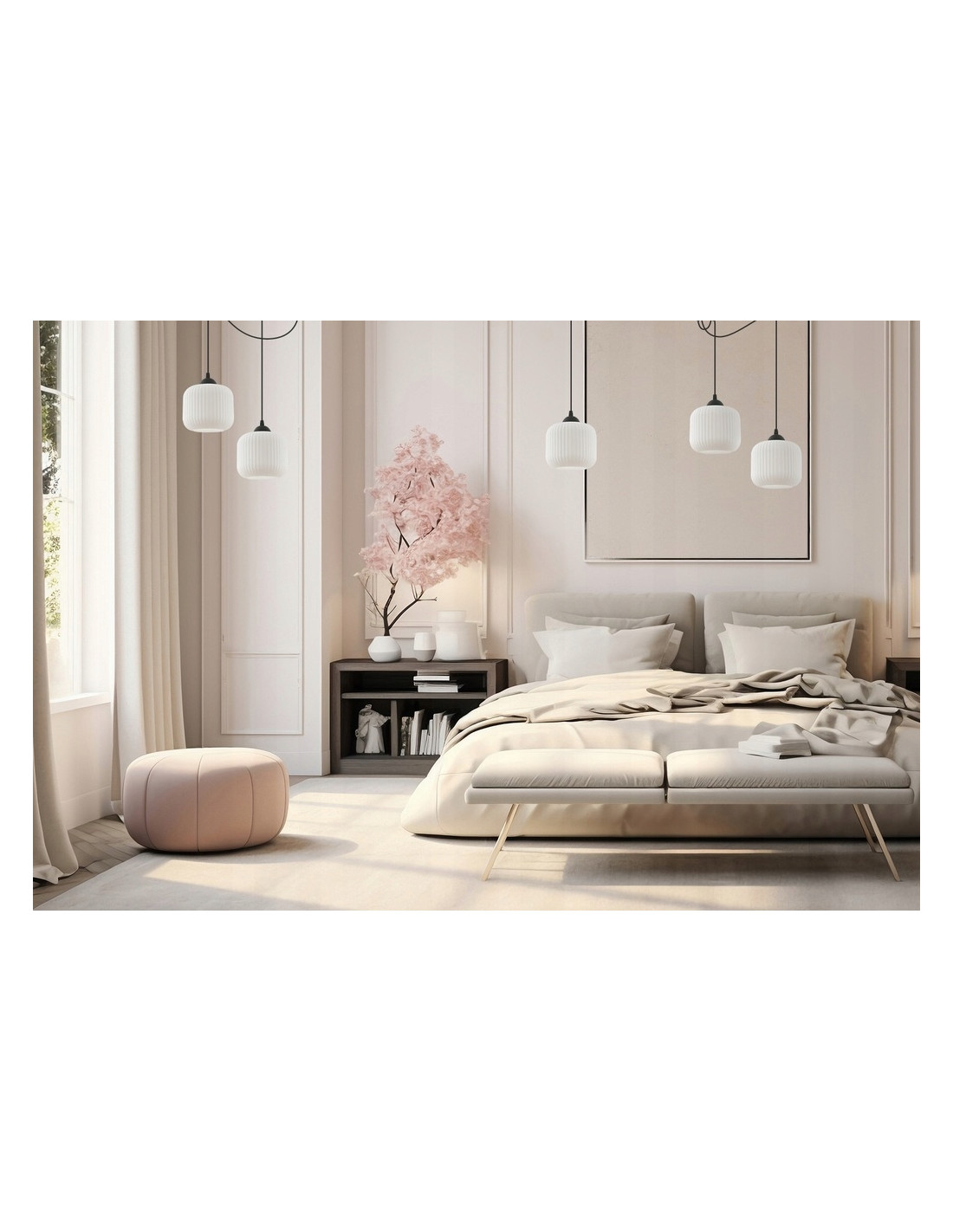 Lampa RIFFLE to elegancki element oświetleniowy, który wprowadza wyjątkowy klimat do każdego wnętrza. Jej modna konstrukcja w kształcie walca, ozdobiona białymi kloszami ze szkła, doskonale wpisuje się w trendy stylu skandynawskiego oraz nowoczesnego. Idealnie nadaje się jako centralne oświetlenie, przyciągające wzrok w każdym pomieszczeniu.