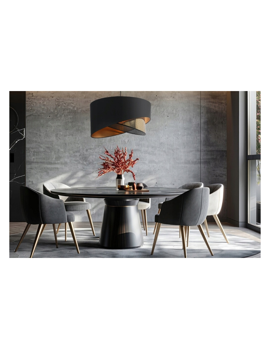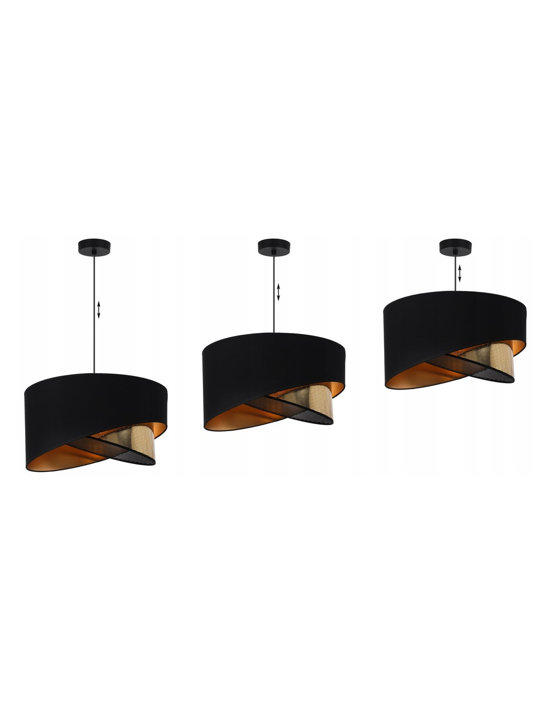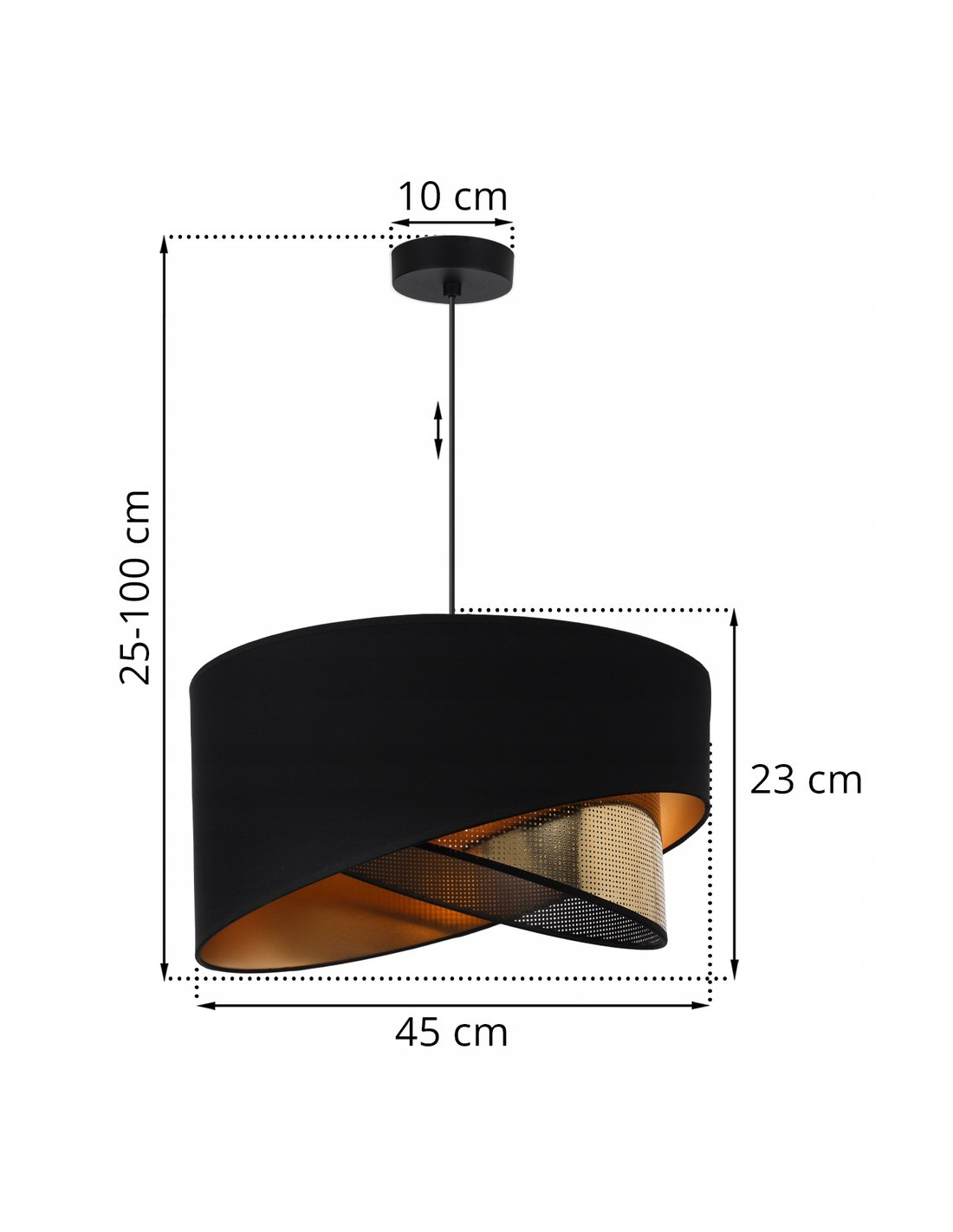 Design lampy ASTI charakteryzuje się połączeniem białej lub czarnej tkaniny oraz złotego tworzywa sztucznego, co tworzy efektowny kontrast. Dzięki temu, możemy być pewni, że lampa będzie przyciągać uwagę w każdym pomieszczeniu, niezależnie czy to będzie salon, jadalnia, sypialnia, czy biuro.