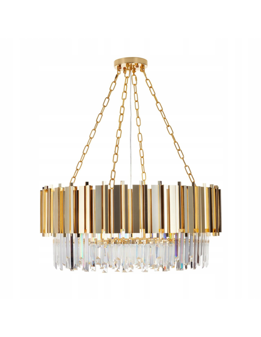 Lampa wisząca REA to doskonały wybór dla osób poszukujących luksusowego oświetlenia do swojego wnętrza. Została zaprojektowana z myślą o elegancji i blichtrze, co czyni ją idealnym dodatkiem do aranżacji glamour. Okrągła ramka w złotym kolorze emanuje blaskiem, a kryształy wykonane z najwyższej jakości materiałów dodają całości niepowtarzalnego charakteru.