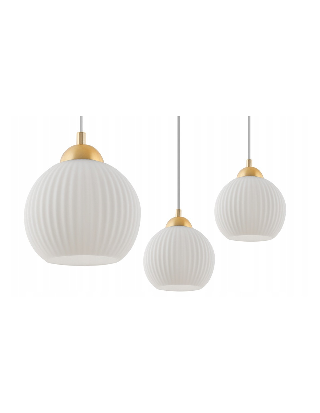 w połączeniu z kloszami w kolorze białym i złotym tworzy harmonijny i stylowy wygląd. Klasa szczelności IP20 zapewnia bezpieczeństwo użytkowania w różnych warunkach wewnętrznych.