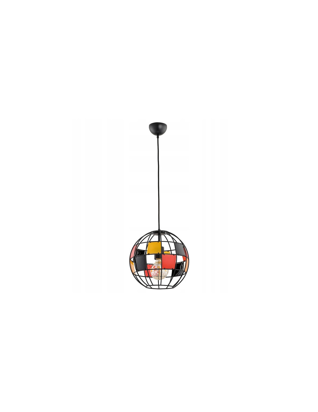 Lampa BASKET CZARNA to doskonały wybór dla osób poszukujących stylowego i nowoczesnego oświetlenia do różnych pomieszczeń. Witrażowy druciany klosz w formie globusa nadaje charakteru każdego wnętrzu, tworząc przytulną atmosferę dzięki wyjątkowym refleksjom świetlnym, które umilają każdą chwilę spędzoną w pomieszczeniu.