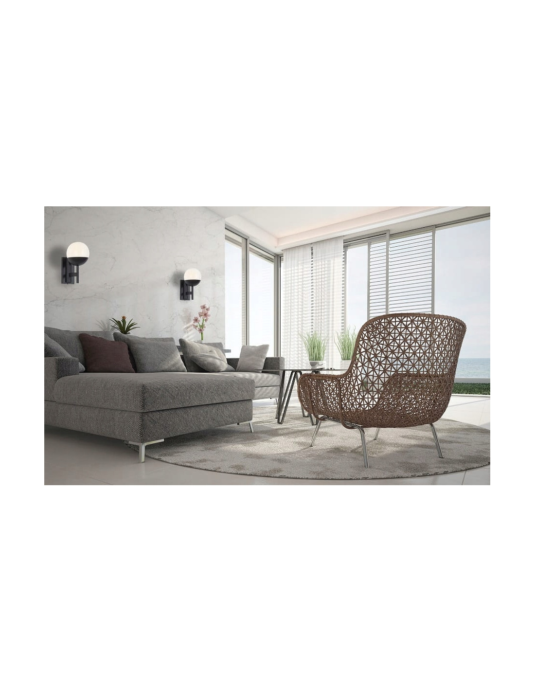 Wielką zaletą kinkietu jest szklany klosz w kształcie kuli, który umożliwia równomierne rozprzestrzenienie światła. Kinkiet wypełnia przestrzeń miękkim, ciepłym światłem, co czyni go idealnym wyborem do umiejscowienia nad sofą, w korytarzu czy na schodach. Dzięki swojemu minimalistycznemu wyglądowi skutecznie uzupełnia aranżacje w różnorodnej kolorystyce.