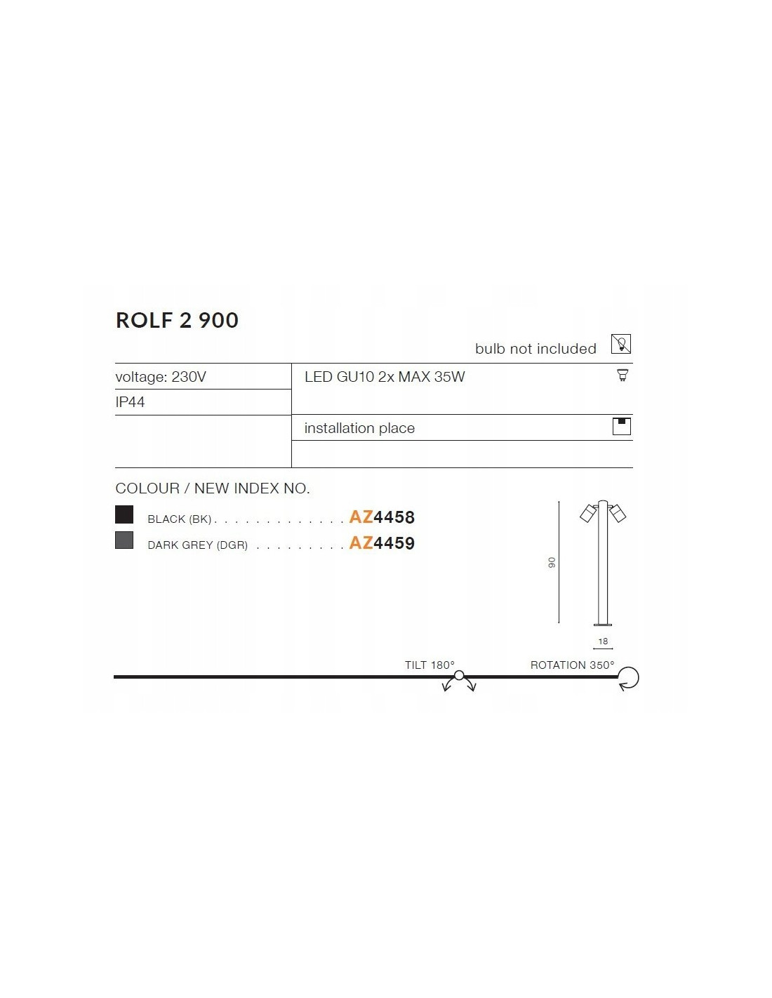 W przypadku lampy ROLF 2, moc żarówki wynosi 35 W, co pozwala na uzyskanie odpowiedniego strumienia świetlnego. Lampa wyposażona jest w dwa reflektory, umożliwiające regulację kąta padania światła, dzięki czemu można dostosować oświetlenie do indywidualnych potrzeb użytkowników. To rozwiązanie świetnie sprawdzi się w ogrodach o różnorodnej architekturze, akcentując wybrane elementy przestrzeni.