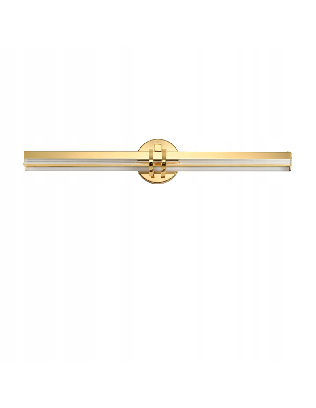 Rama kinkietu została wykonana z metalu w kolorze złotym, co nadaje jej elegancki i nowoczesny wygląd. Świecący element, stworzony z kryształowego szkła, emituje ciepłe, rozproszone światło, które wprowadza wyjątkową atmosferę do pomieszczenia. Dzięki centralnemu, ozdobnemu elementowi w tej samej kolorystyce co rama, kinkiet zyskuje na wyrazistości oraz unikalności.