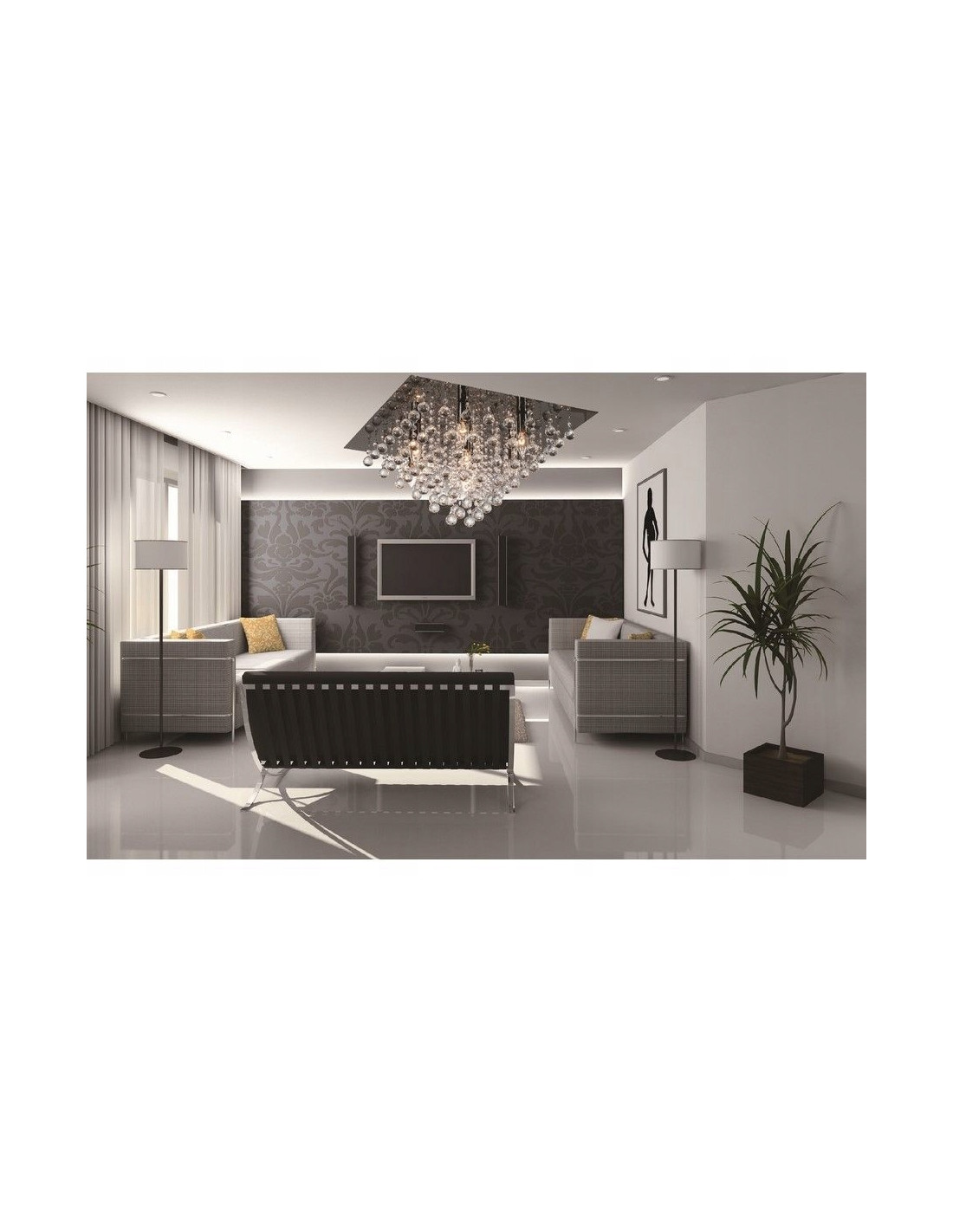 Oferowany plafon charakteryzuje się oryginalnym wyglądem i wyjątkową harmonią, dzięki czemu jest nie tylko funkcjonalnym źródłem światła, ale także stylowym dodatkiem do wystroju. Dzięki zastosowaniu kryształów, światło żarówek odbija się, tworząc subtelny blask, który wprowadza atmosferę luksusu w każdym pomieszczeniu.