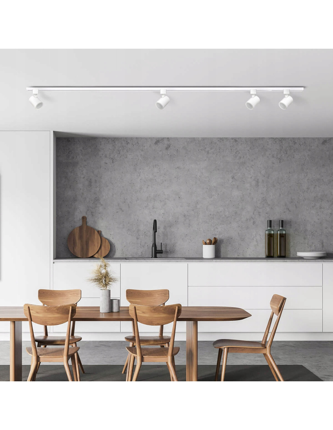Każdy z czterech reflektorów SNOW jest obrotowy, co pozwala na ich swobodne ustawienie w dowolnym miejscu na szynie i skierowanie światła tam, gdzie jest to najbardziej potrzebne. Dodatkowo, reflektory są przystosowane do żarówek GU10, co umożliwia łatwą wymianę źródła światła zgodnie z własnymi preferencjami (żarówki GU10 nie są dołączone do zestawu).