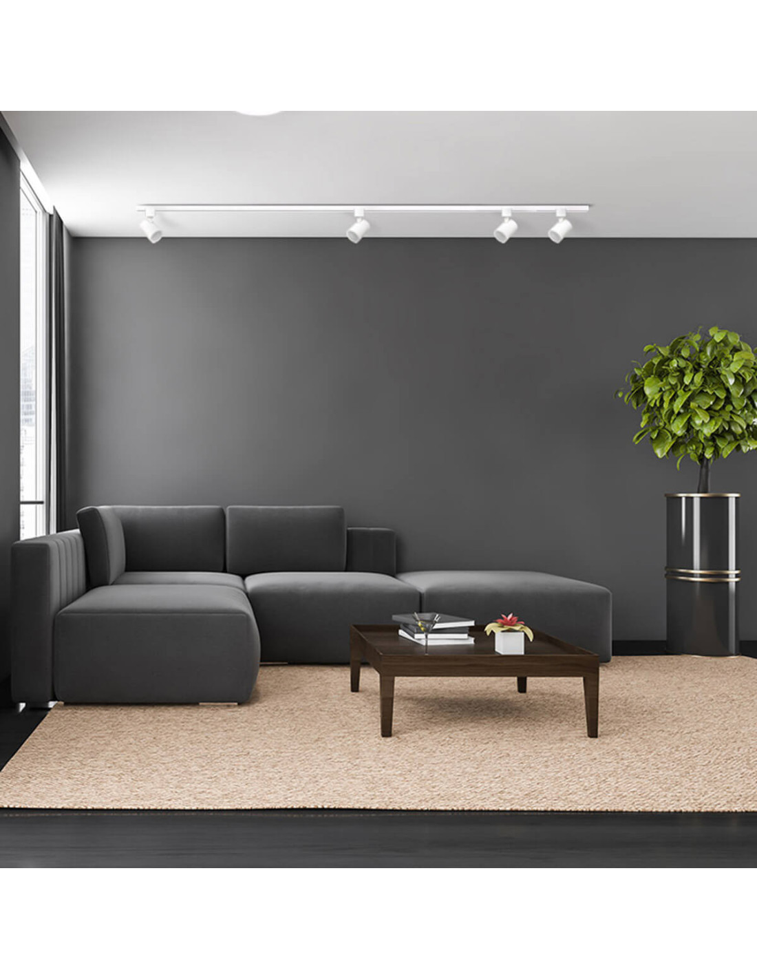 Snow SET 1F to jednofazowy system oświetleniowy (1F), co oznacza, że wszystkie reflektory mogą być sterowane za pomocą jednego włącznika. Dzięki temu, organizacja oświetlenia staje się prosta i wygodna. Zestaw zawiera dwie szyny o długości 75 cm każda, które po połączeniu z łącznikiem dają łączną długość 160 cm. Taki rozmiar daje wiele możliwości montażu oraz aranżacji światła w pomieszczeniu.