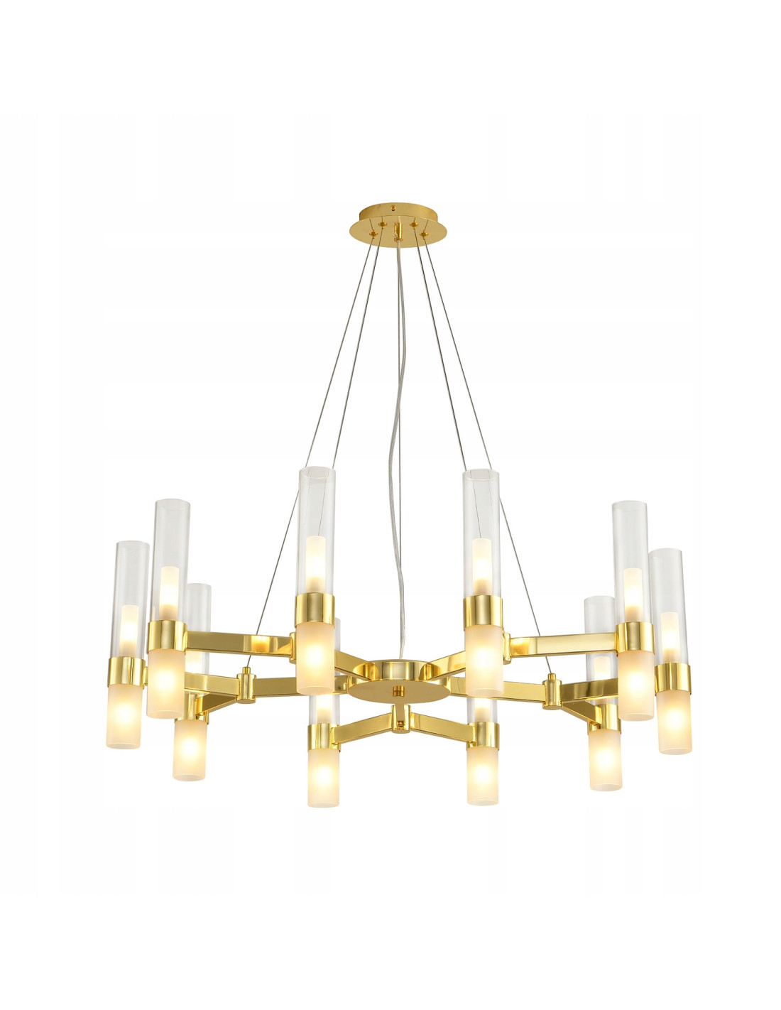 Całość lampy zwieńczają klosze w kształcie rurek, które zostały starannie wykonane z mlecznego satynowego szkła. Ich subtelny design nie tylko przyciąga wzrok, ale także doskonale rozprasza światło, tworząc przyjemną atmosferę. CANDELA-10 to propozycja, która idealnie wpasuje się w zarówno nowoczesne, jak i klasyczne wnętrza.