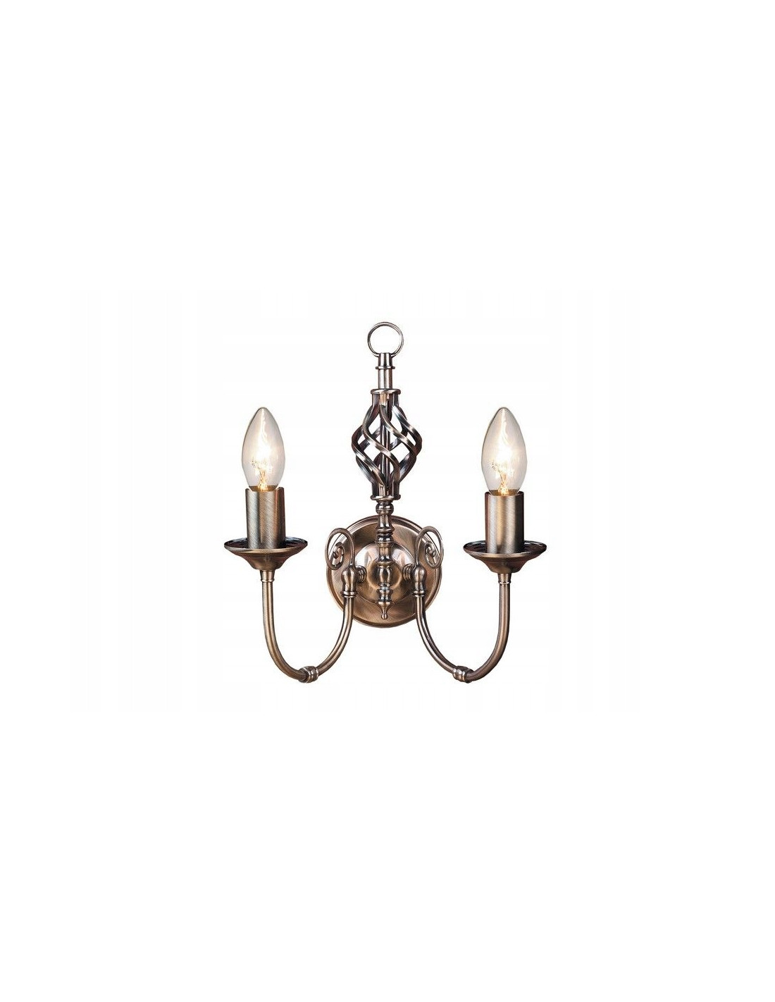 Jego solidna metalowa konstrukcja podkreśla elegancję oraz trwałość, a patynowe wykończenie nadaje mu wyjątkowy charakter. Kinkiet doskonale wpisuje się w zarówno tradycyjne, jak i nowoczesne wnętrza, dzięki czemu będzie pasował do różnorodnych aranżacji.