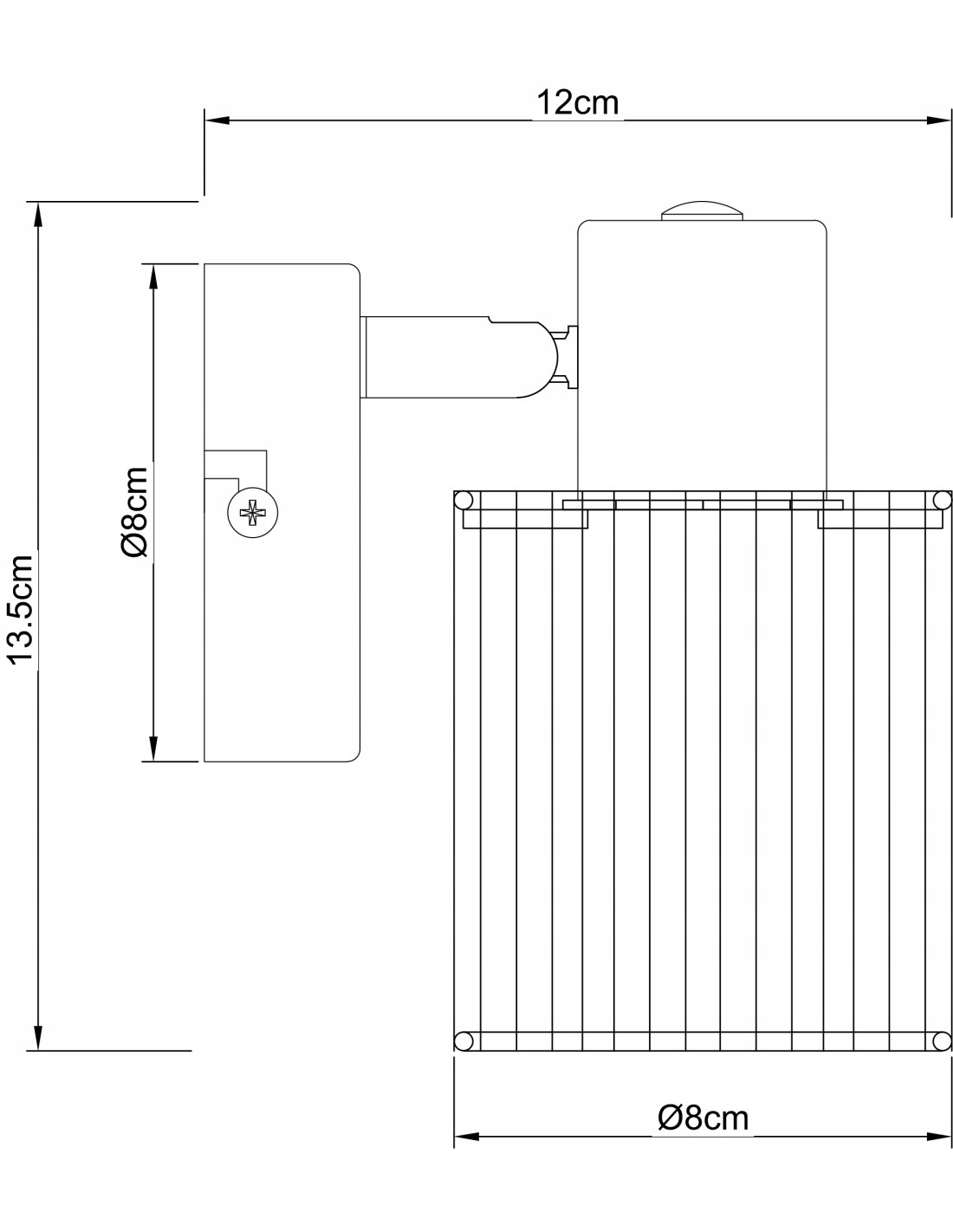 Kinkiet Arila jest dostępny w klasycznym czarnym matowym wykończeniu, które łatwo wpisuje się w różnorodne aranżacje. Jego kompaktowe wymiary (wysokość: 12 cm, szerokość: 14 cm, głębokość: 8 cm) sprawiają, że idealnie nadaje się do niewielkich przestrzeni. Może być użyty zarówno jako samodzielne źródło światła, jak i jako element szerszej koncepcji oświetleniowej w Twoim domu.