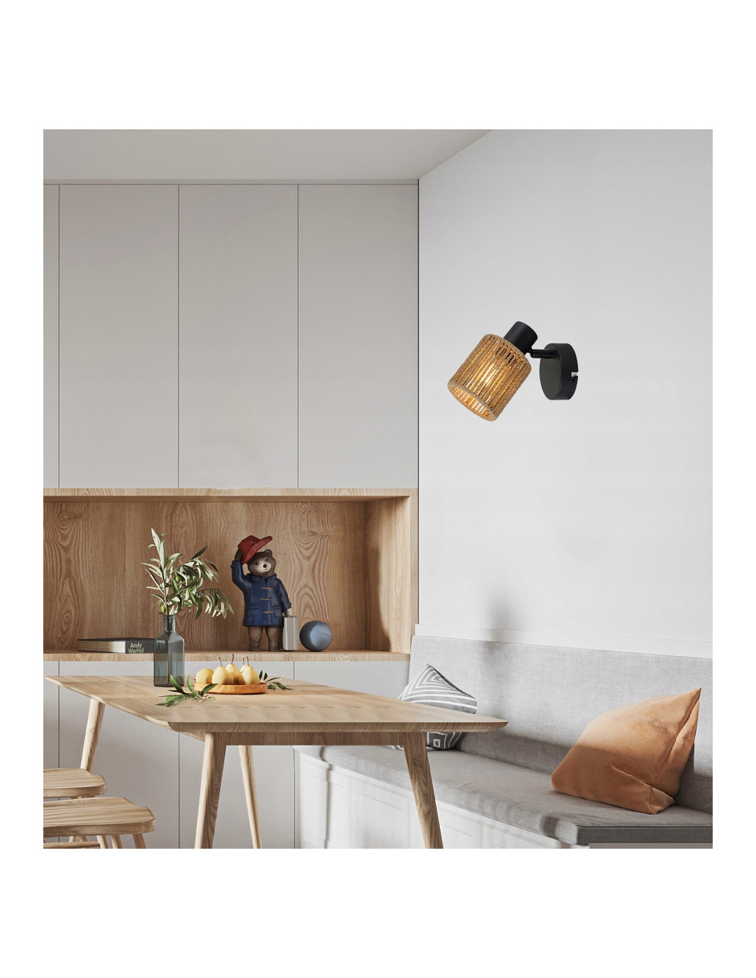 Wprowadź wyjątkowy akcent do swojej przestrzeni z kinkietem sznurkowym Arila, idealnym do umiejscowienia nad szafką nocną w sypialni. Jego nowoczesny design w połączeniu z elementami skandynawskimi sprawia, że stanowi doskonały wybór dla osób ceniących sobie styl i elegancję. Abażur wykonany z papierowego sznurka nie tylko przyciąga wzrok, ale również tworzy ciepłą i przytulną atmosferę w każdym wnętrzu.