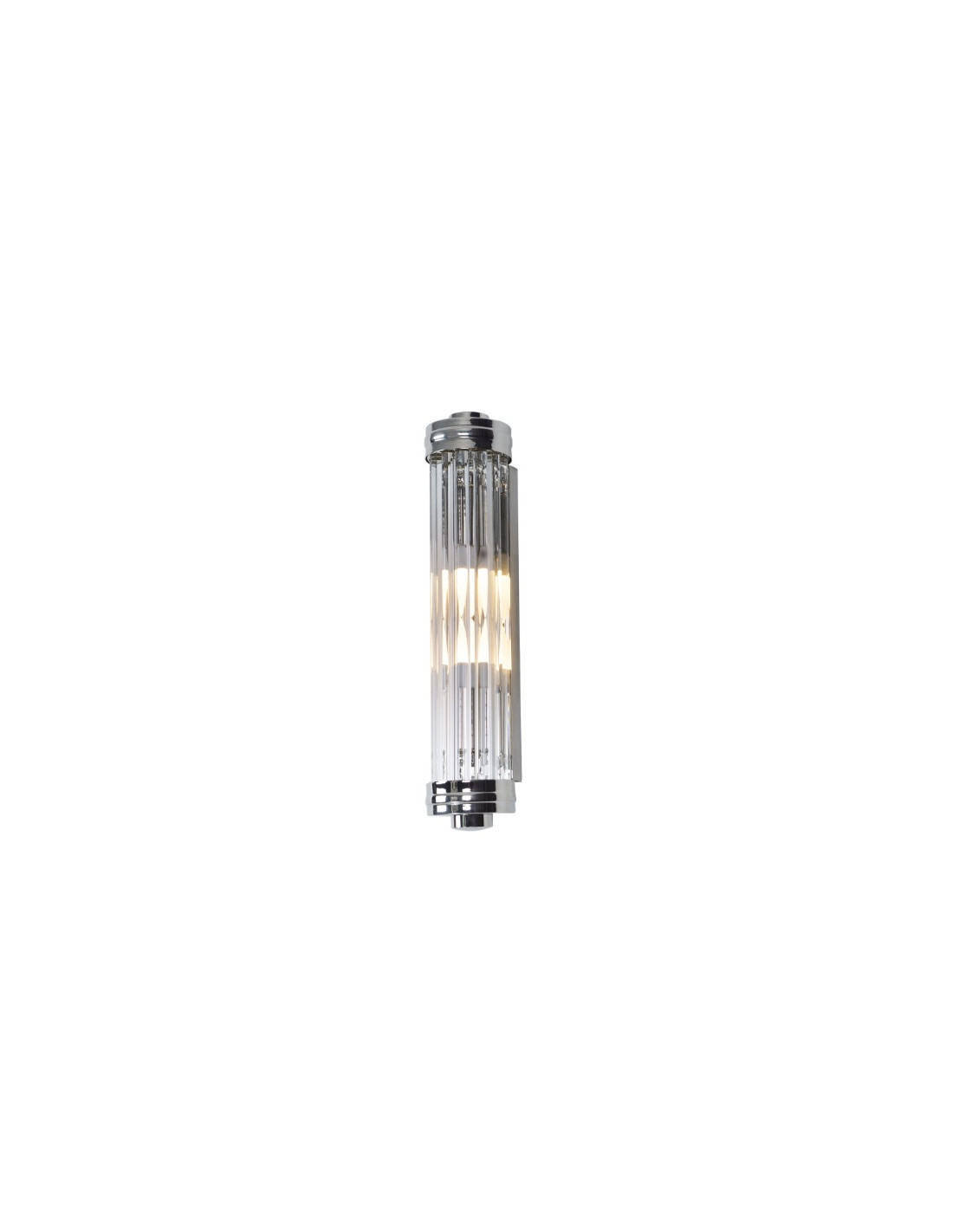 Oprawa kinkietu mieści dwa punkty świetlne, co zapewnia optymalne oświetlenie w pomieszczeniu. Szklane elementy klosza, które załamują światło, nadają lampie wyrafinowany wygląd, a jej obecność z pewnością przyciągnie wzrok gości. Kinkiet dostępny w wykończeniu mosiężnym i niklowym jest nie tylko funkcjonalny, ale także stanowi znakomitą ozdobę.