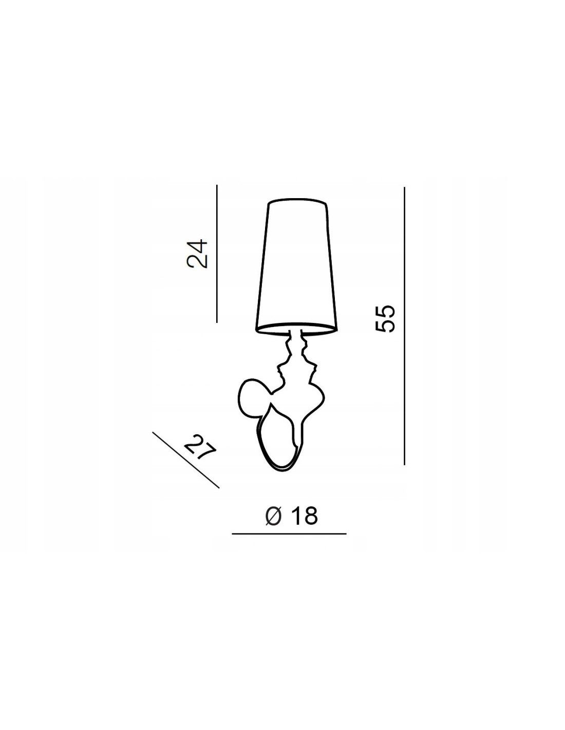 Wymiary kinkietu BAROCO to wysokość 55 cm oraz średnica 18 cm, co sprawia, że jest idealnie proporcjonalny. Posiada także jedno źródło światła z gwintem E14, co pozwala na dobranie odpowiedniej żarówki zgodnie z indywidualnymi preferencjami użytkownika. Warto dodać, że lampa nie zawiera źródła światła w komplecie, co pozwala na pełną dowolność w jego wyborze.