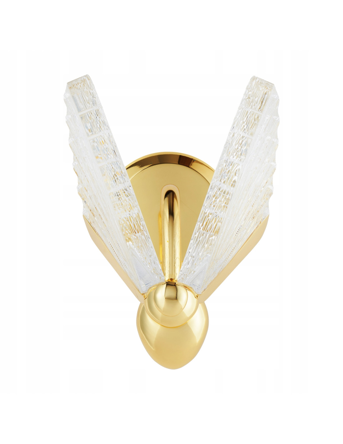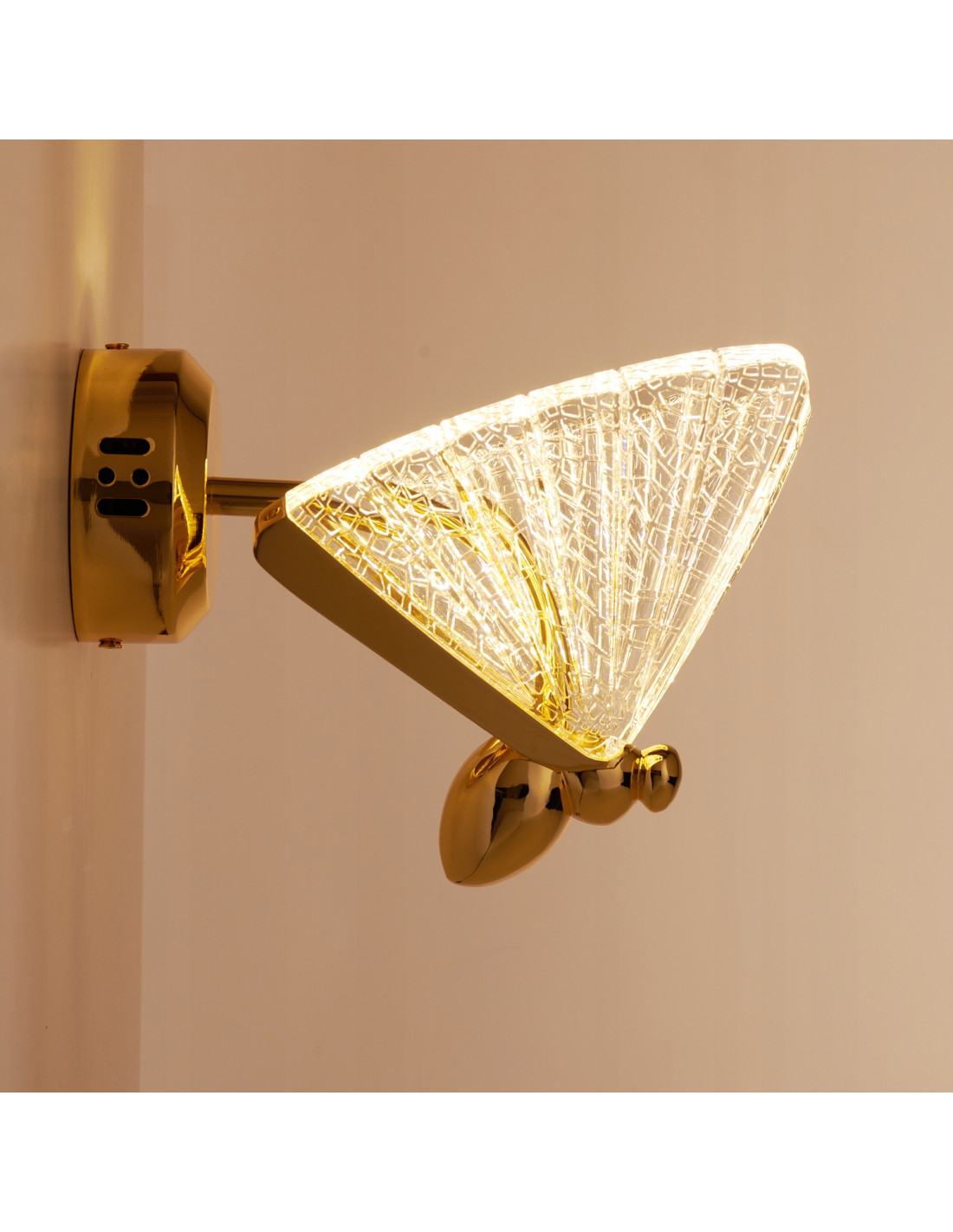 Wykonany z wysokiej jakości metalu oraz akrylu, kinkiet charakteryzuje się oryginalnym kształtem przypominającym pszczołę. Jego transparentno-złote wykończenie wprowadza do pomieszczenia atmosferę luksusu i elegancji. Lampa wprowadza ciepłe, przyjemne światło o barwie 3000 K, co czyni ją idealnym wyborem do sypialni oraz innych pomieszczeń, takich jak biuro, jadalnia czy pokój dziecięcy.