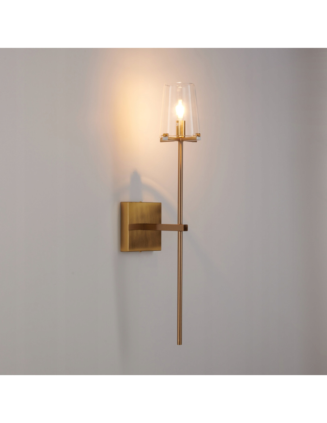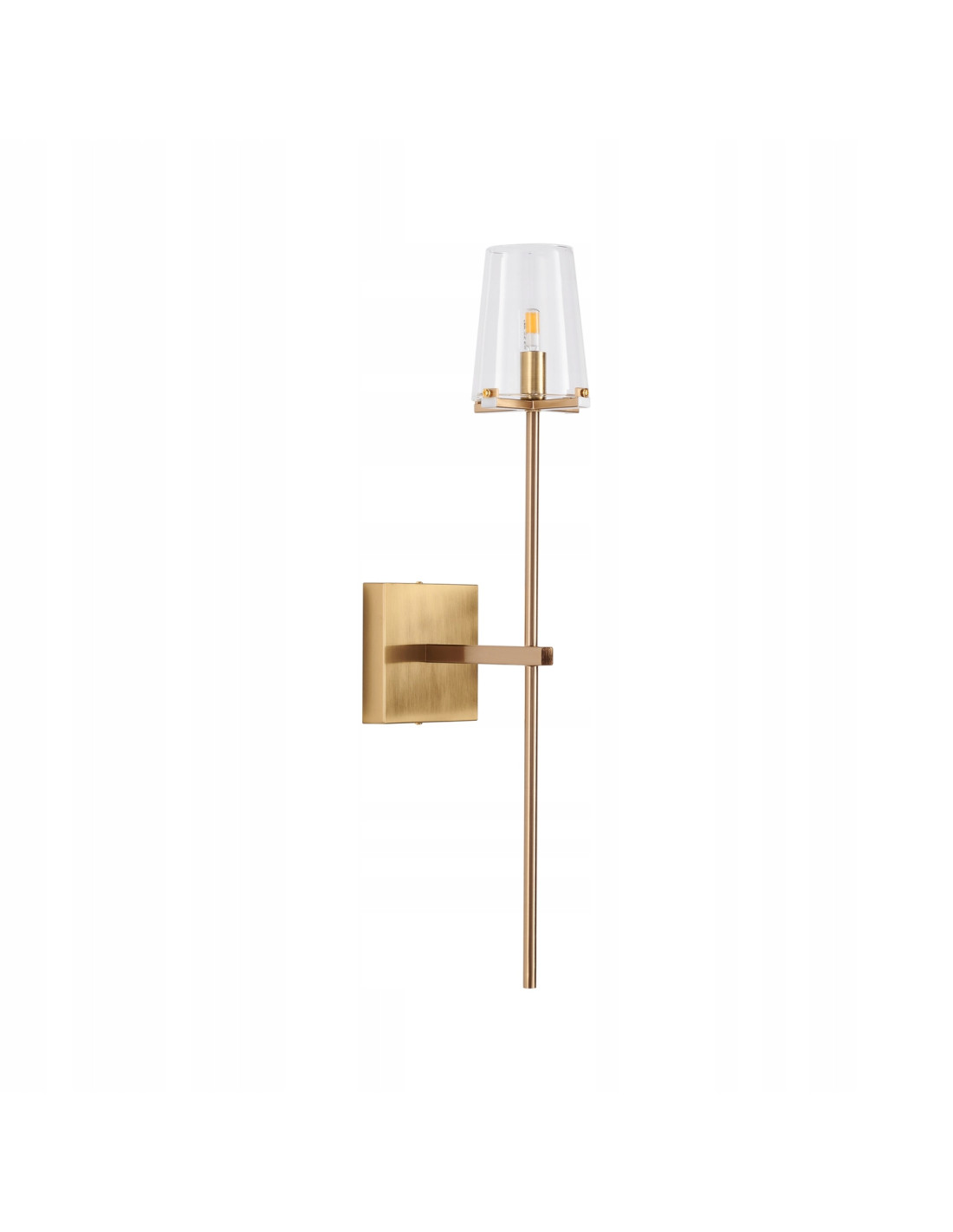 Kinkiet CLASSICO wyposażony jest w prosty, cylindryczny szklany klosz, który emituje miękkie, rozproszone światło. Taki rodzaj oświetlenia wpływa pozytywnie na atmosferę pomieszczenia, tworząc przytulne i relaksujące miejsce. Szklany klosz w połączeniu z metalową podstawą w kolorze polerowanego złota dodaje całości szyku oraz ekskluzywności, co czyni go idealnym wyborem dla miłośników stylu glamour.