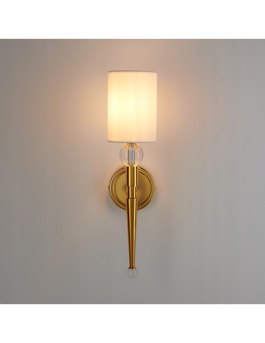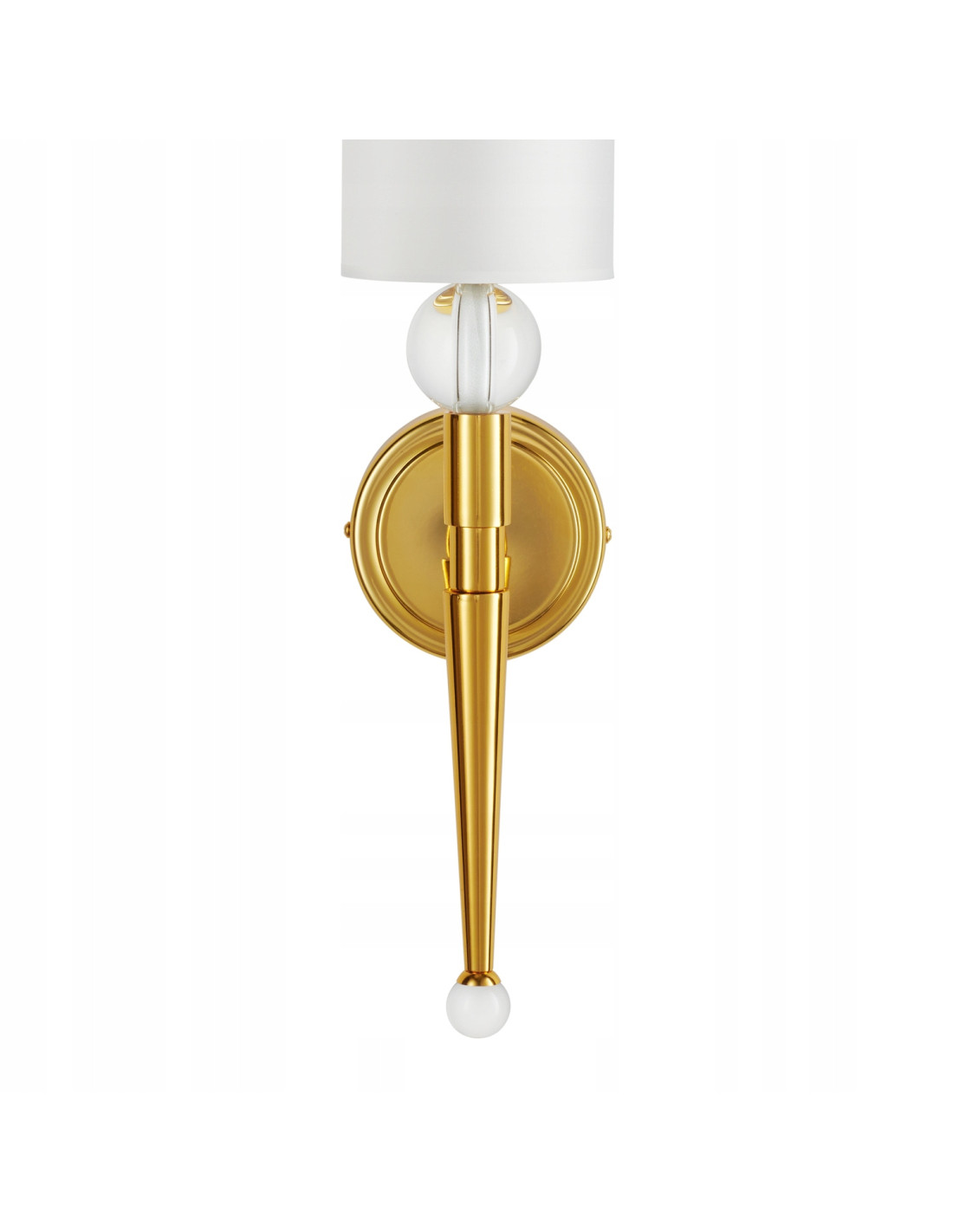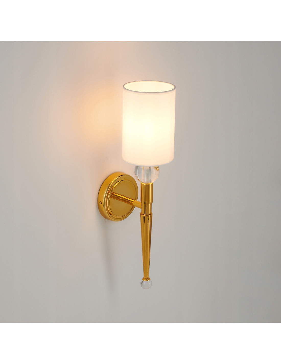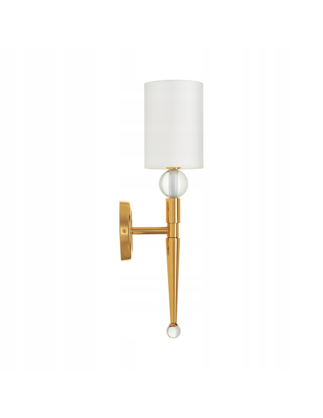 Metalowa podstawa w kolorze polerowanego złota dodaje kinkietowi wyjątkowego charakteru i stylu. Połączenie złota z białym kloszem sprawia, że lampa staje się niezwykle uniwersalnym elementem aranżacyjnym, który doskonale komponuje się z różnorodnymi stylami wnętrzarskimi – od nowoczesnych po klasyczne.