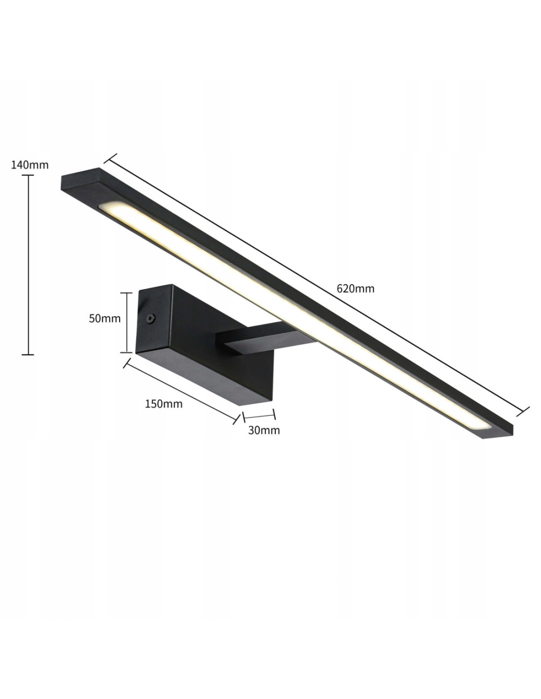 Minimalistyczna forma kinkietu w kolorze czarnym sprawia, że z łatwością wpasuje się w różnorodne style aranżacyjne, od nowoczesnych po klasyczne. Jego wysokość 5 cm, szerokość 62 cm i głębokość 14 cm pozwalają na wygodne montowanie go nad lustrem czy w innych miejscach, gdzie potrzebujesz dodatkowego światła.