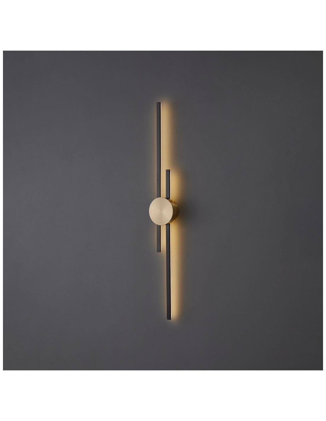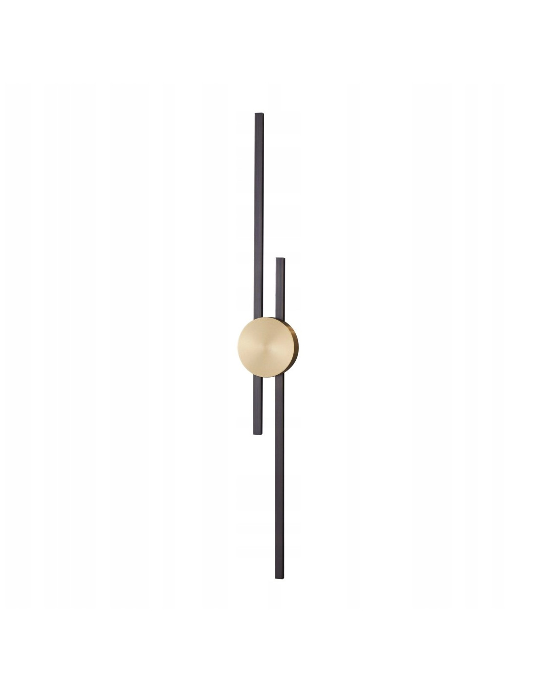 Kinkiet LED CENTRO w kolorze czarno-złotym to propozycja dla miłośników nowoczesnej, minimalistycznej formy. Konstrukcja składa się z dwóch smukłych, czarnych rurek połączonych centralnym, złotym kółkiem, które pełni jednocześnie funkcję mocowania do ściany. Dzięki prostemu designowi i subtelnemu złotemu akcentowi kinkiet doskonale komponuje się zarówno w wnętrzach hotelowych, jak i domowych, dodając im elegancji bez zbędnej dekoracyjności.