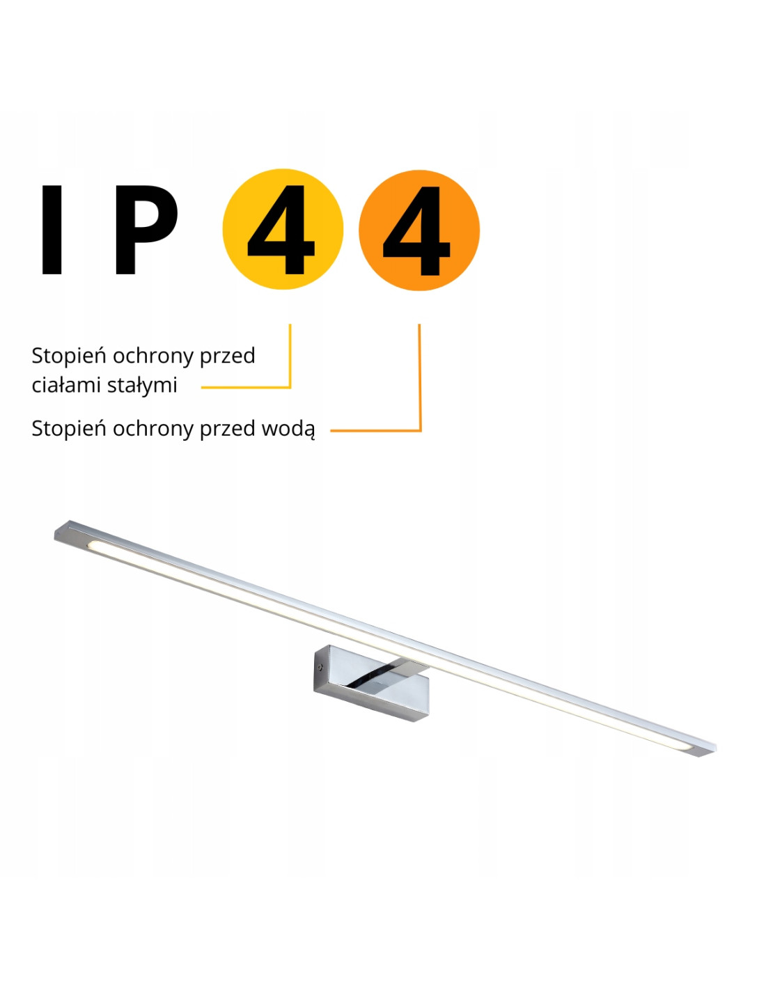 Urządzenie charakteryzuje się klasą ochronności IP44, co oznacza, że jest odporne na wilgoć, co czyni je idealnym rozwiązaniem do łazienek. Wysoka jakość materiałów, z których wykonano kinkiet, zapewnia trwałość oraz długowieczność użytkowania. Metalowa konstrukcja kinkietu nie tylko prezentuje się elegancko, ale również jest łatwa w utrzymaniu czystości.