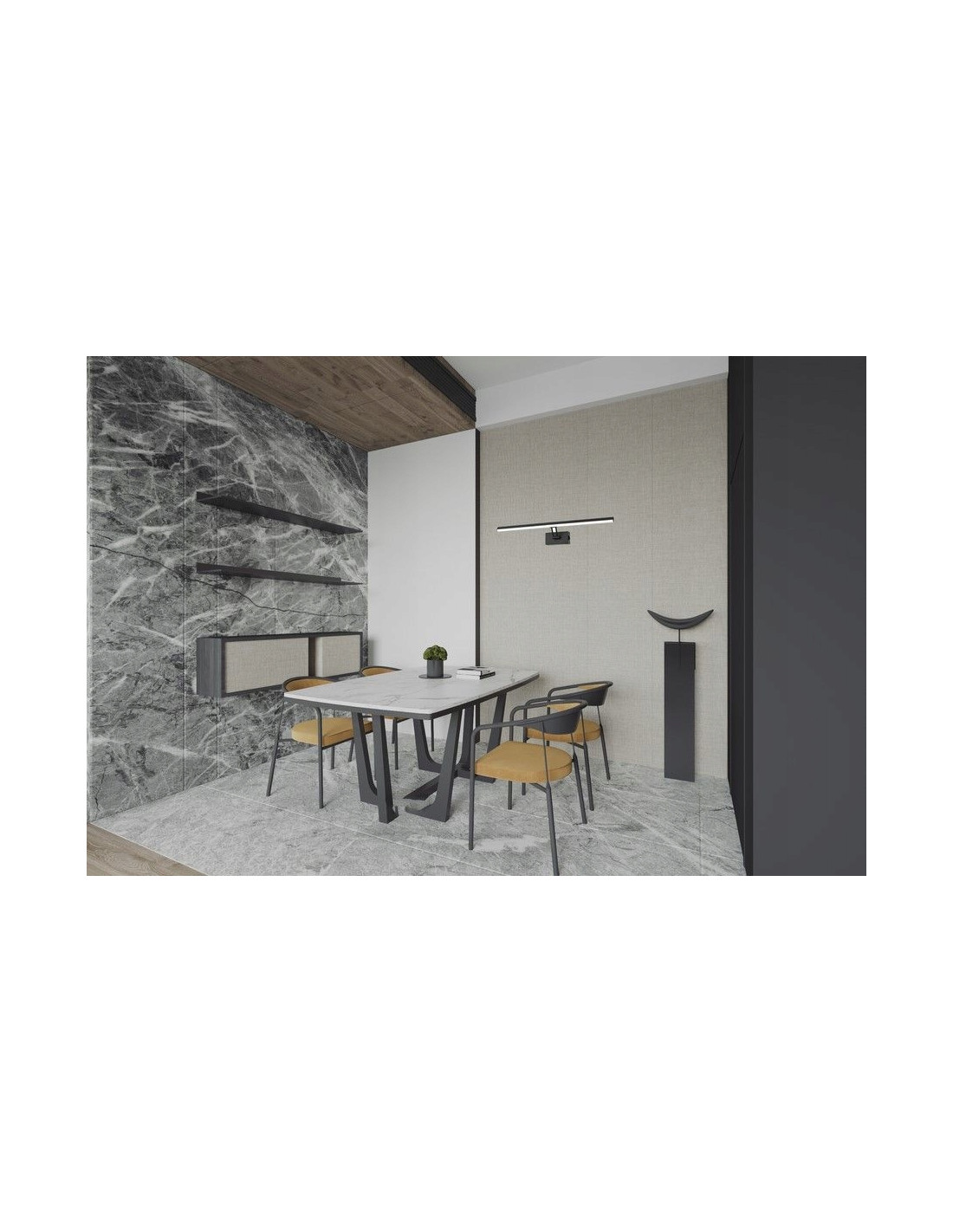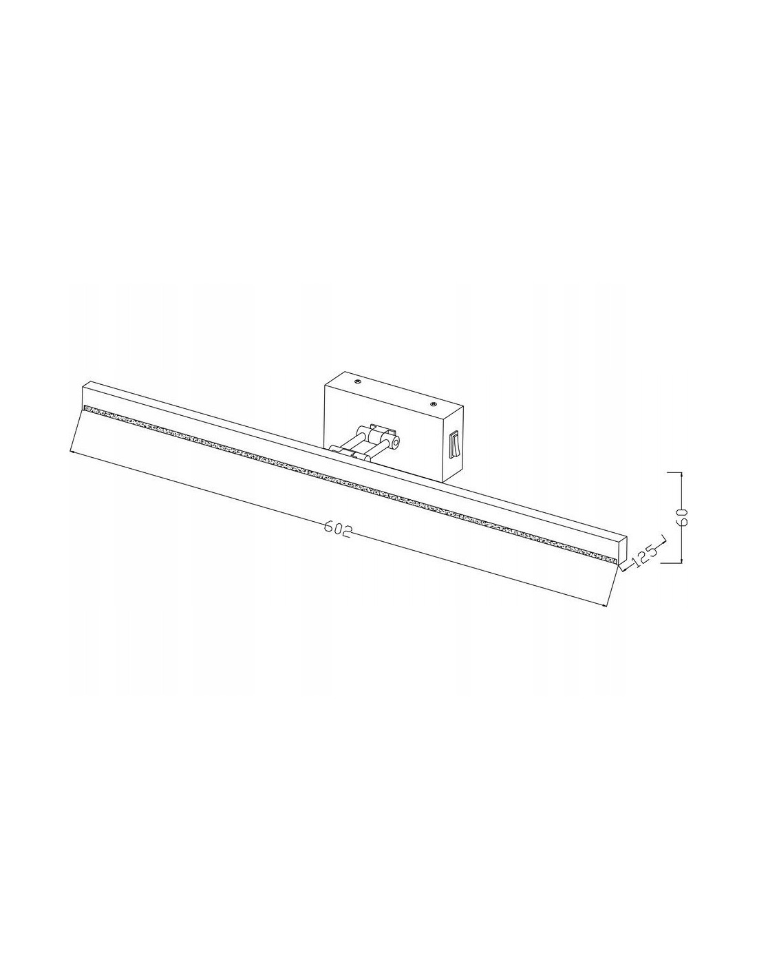 Wymiary kinkietu to 60 cm długości oraz 12,5 cm szerokości, co sprawia, że jest idealnym rozwiązaniem do sypialni, salonu czy przedpokoju. O jego estetyce i elegancji stanowi klasyczny czarny kolor, który doskonale komponuje się z różnorodnymi stylami i kolorami wnętrz. Kinkiet doda subtelnej elegancji i nowoczesności każdemu pomieszczeniu.
