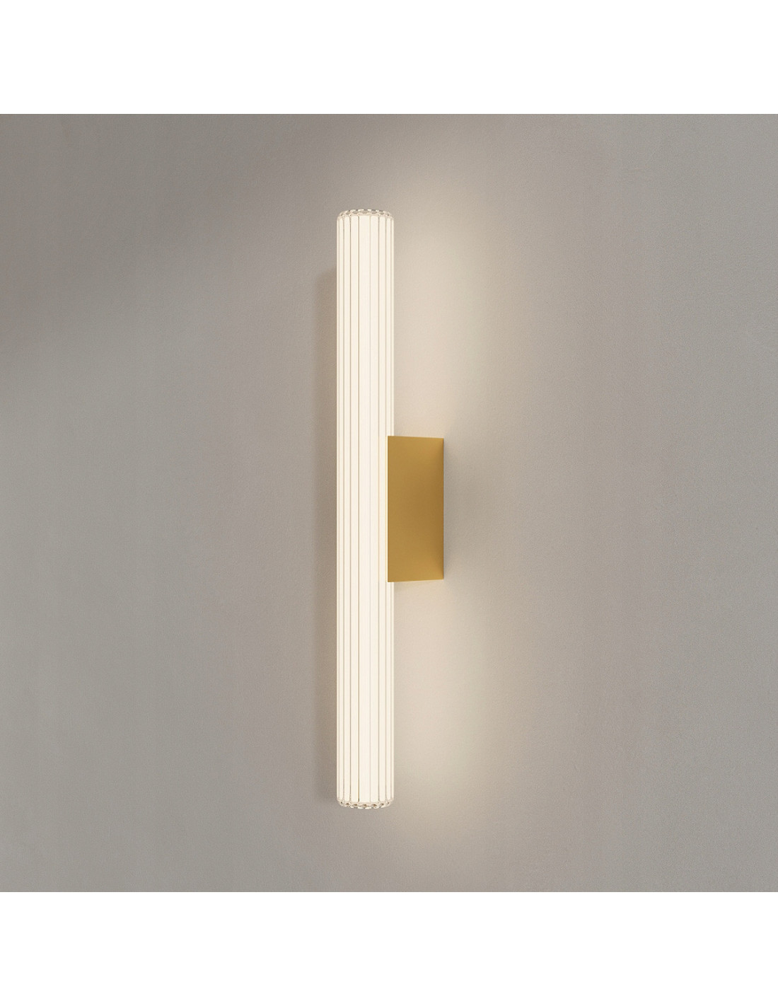 Kinkiet Linea w eleganckim złotym wykończeniu to idealne rozwiązanie dla osób poszukujących nowoczesnych i stylowych akcesoriów oświetleniowych. Dzięki swojemu minimalistycznemu designowi, kinkiet doskonale wpisuje się w najnowsze trendy aranżacyjne, zarówno w salonie, jak i w łazience. Jego subtelna forma sprawia, że może być wykorzystany jako główne źródło światła lub dodatkowy element dekoracyjny.