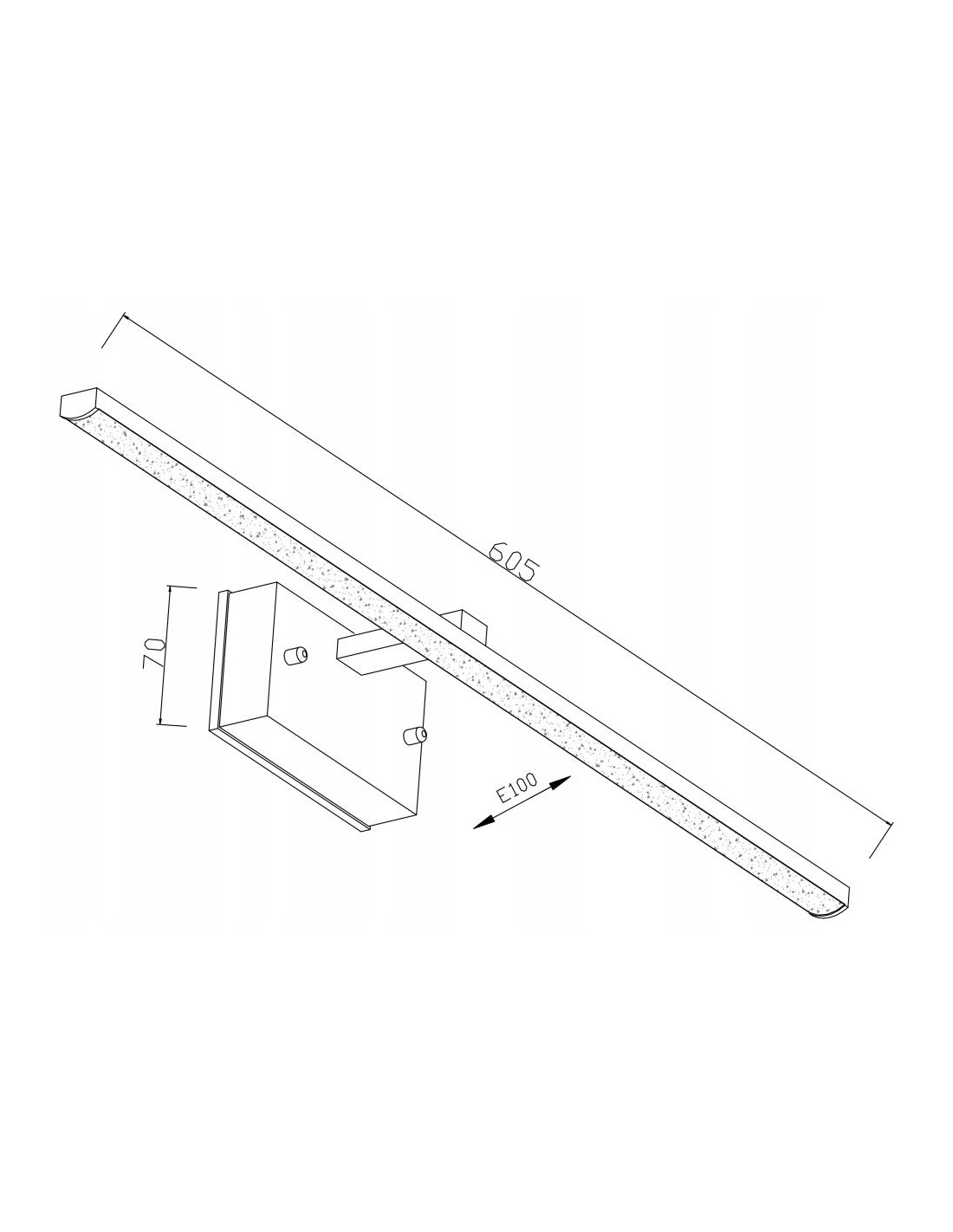 Wymiary kinkietu wynoszą: 60 cm szerokości, 5.5 cm wysokości i 10 cm głębokości, co sprawia, że jest on zarówno kompaktowy, jak i łatwy do zamontowania. Standardowe napięcie robocze w zakresie 220-240V umożliwia bezproblemową instalację w typowych warunkach domowych, co czyni go dostępnym dla szerokiej grupy użytkowników.