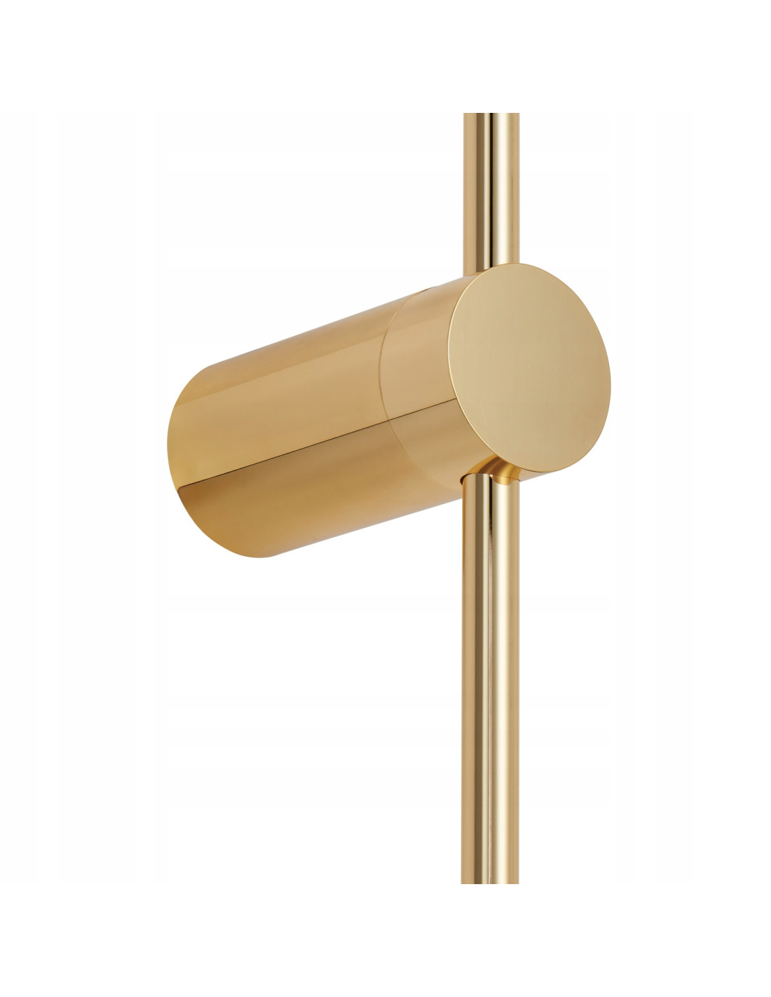Produkt wykonany jest z trwałego metalu i dostępny w kilku wariantach kolorystycznych: złoto szczotkowane, złoty poler, czarny oraz biały. Kinkiet może być stosowany pojedynczo lub w rytmicznych, wieloelementowych kompozycjach, co pozwala na elastyczne rozwiązania projektowe.