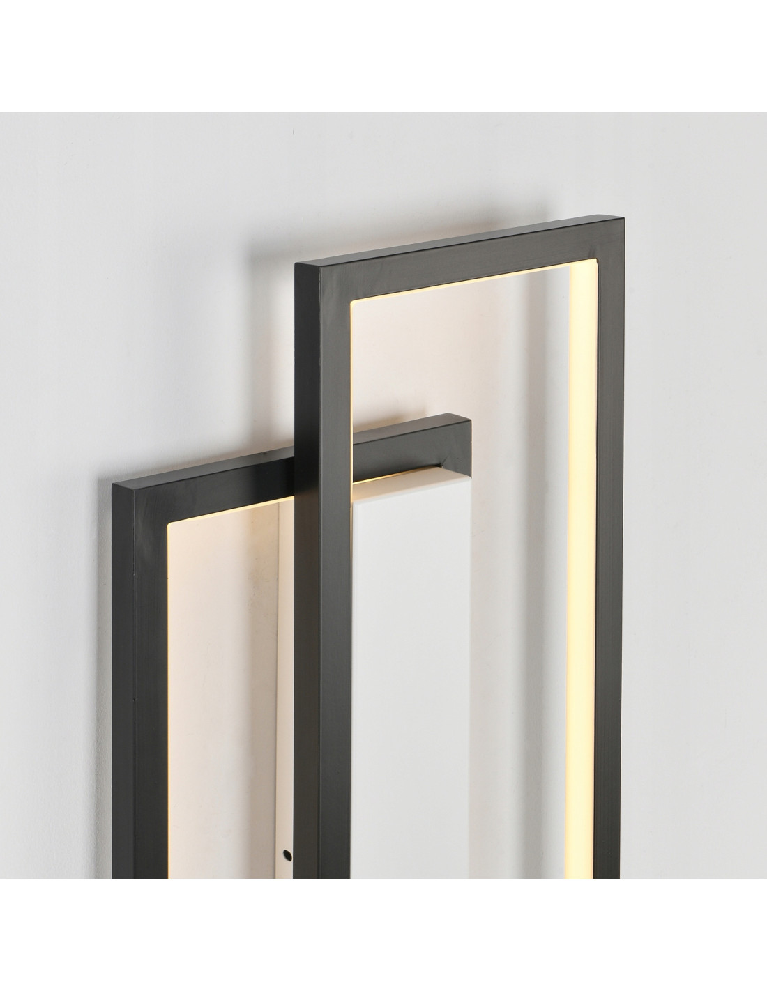 Charakterystyczne cechy kinkietu SYMMETRY to jego prosta geometria oraz dwukolorowe wykończenie. Czarna rama kontrastuje z białym wypełnieniem, w którym znajduje się zintegrowane źródło światła LED, emitujące białe ciepłe światło o temperaturze 3000K. To połączenie nie tylko przyciąga wzrok, ale także sprawia, że kinkiet staje się centralnym punktem każdego pomieszczenia.