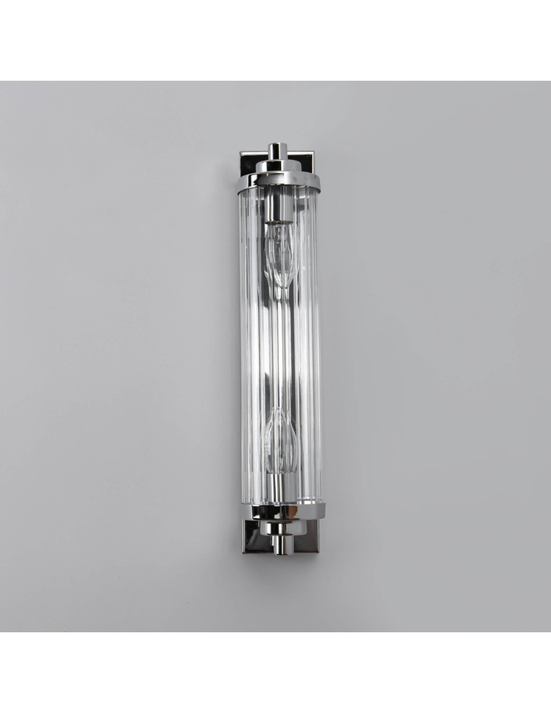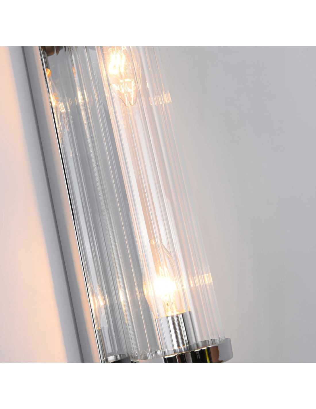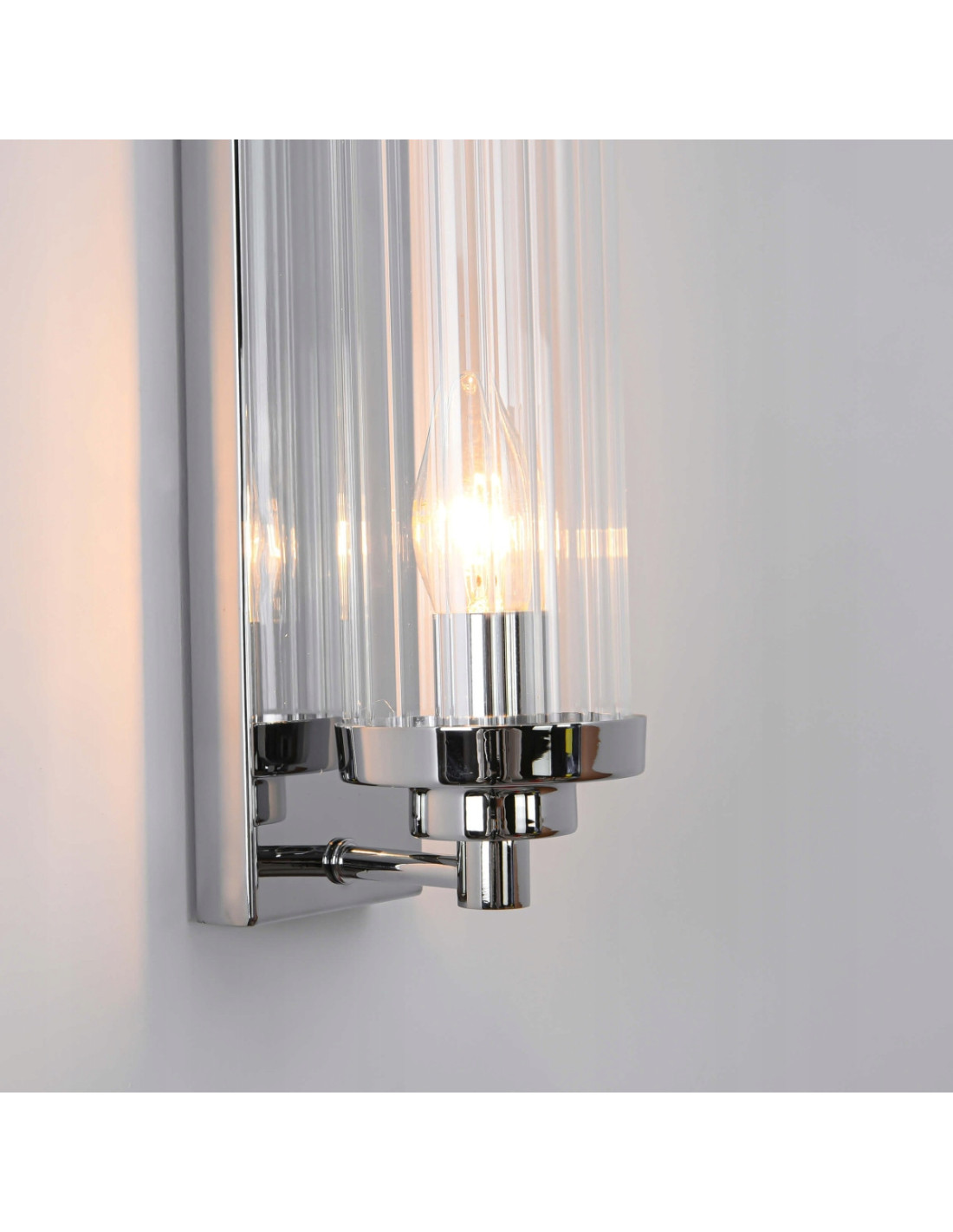 Warto zwrócić uwagę na materiały, z których wykonano ten produkt. Metal użyty w stelażu w połączeniu z przezroczystym szkłem podkreśla nowatorski charakter lampy. Możliwość zastosowania dwóch punktów świetlnych z gwintem E14 o maksymalnej mocy 40W zapewnia optymalne oświetlenie, które można dostosować do własnych potrzeb.