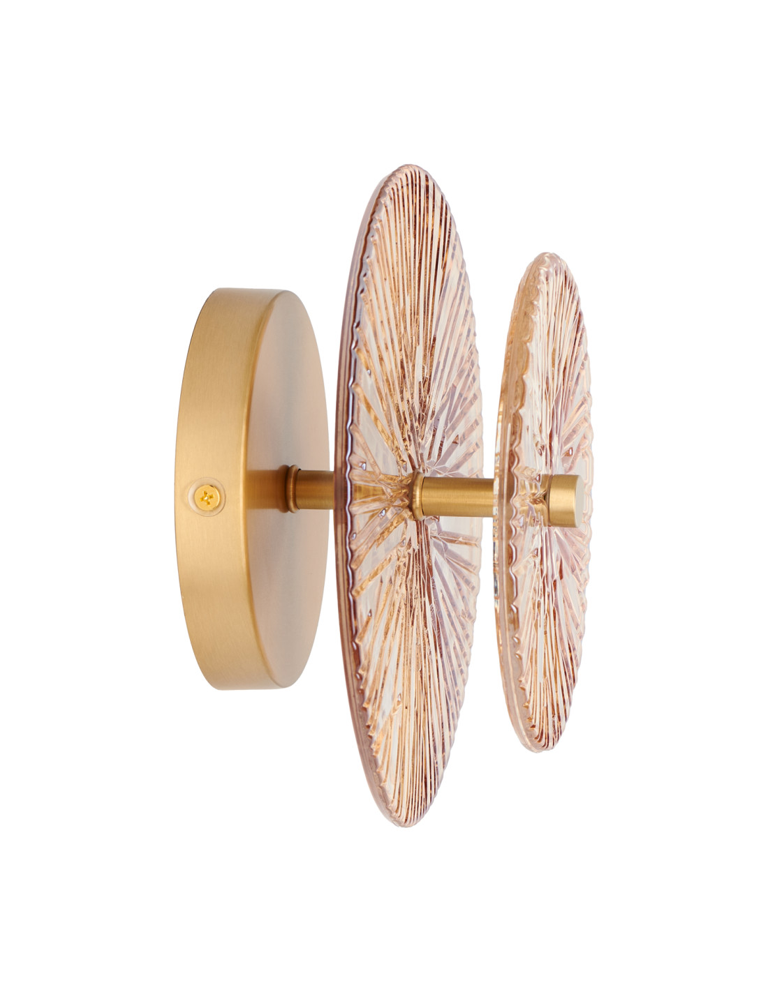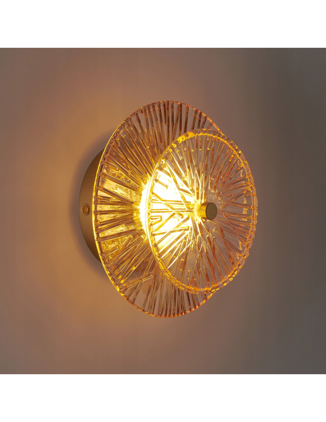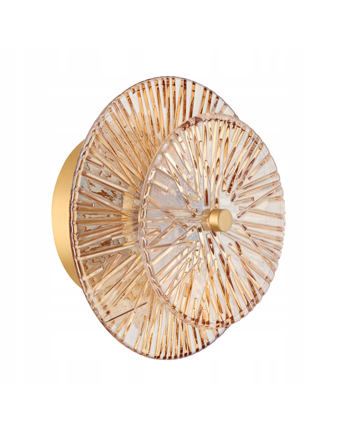 Wykonana z wysokiej jakości szkła ryflowanego oraz mosiądz, kinkiet LUXIO wyróżnia się wyjątkowym wykończeniem w odcieniu złotym, co nadaje mu luksusowego wyrazu. Szklana powierzchnia lampy sprawia, że całość zyskuje lekkości, a ciepłe światło wypełnia przestrzeń przytulnym i harmonijnym blaskiem.