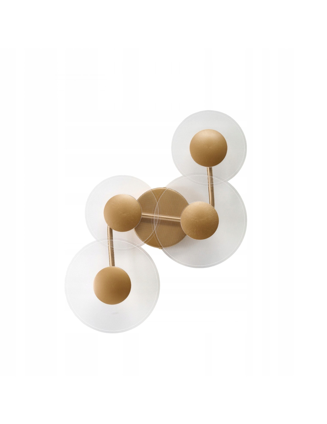 Konstrukcja została wykonana z aluminium i szkła, co gwarantuje jednocześnie lekkość i trwałość produktu. Design kinkietu kładzie nacisk na estetykę detalu — przezroczyste klosze delikatnie rozpraszają światło, a złote elementy dodają całości elegancji. Klasa szczelności IP20 wskazuje, że oprawa jest przeznaczona do wnętrz suchych, typowych dla pomieszczeń mieszkalnych.