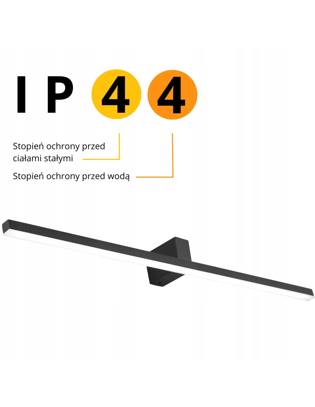 Wymiary kinkietu to: wysokość 7 cm, szerokość 90 cm oraz głębokość 9,5 cm. Dzięki tym parametrom, kinkiet sprawdzi się idealnie w dużych, przestronnych łazienkach, będąc nie tylko źródłem światła, ale również atrakcyjnym elementem dekoracyjnym.