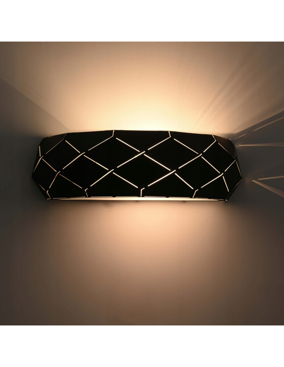 Czarny kinkiet z kolekcji Reus to wyjątkowy element oświetleniowy, który łączy w sobie nowoczesny design z elegancją stylu glamour. Wykonany z wysokiej jakości metalu, kinkiet zachwyca ozdobnym wzorem, który przyciąga wzrok i nadaje wnętrzu niepowtarzalny charakter. Jego czarna powierzchnia w eleganckim macie doskonale wpisuje się w aktualne trendy aranżacyjne, dając możliwość harmonijnego zestawienia z różnorodnymi stylami wystroju, zarówno nowoczesnym, jak i klasycznym.