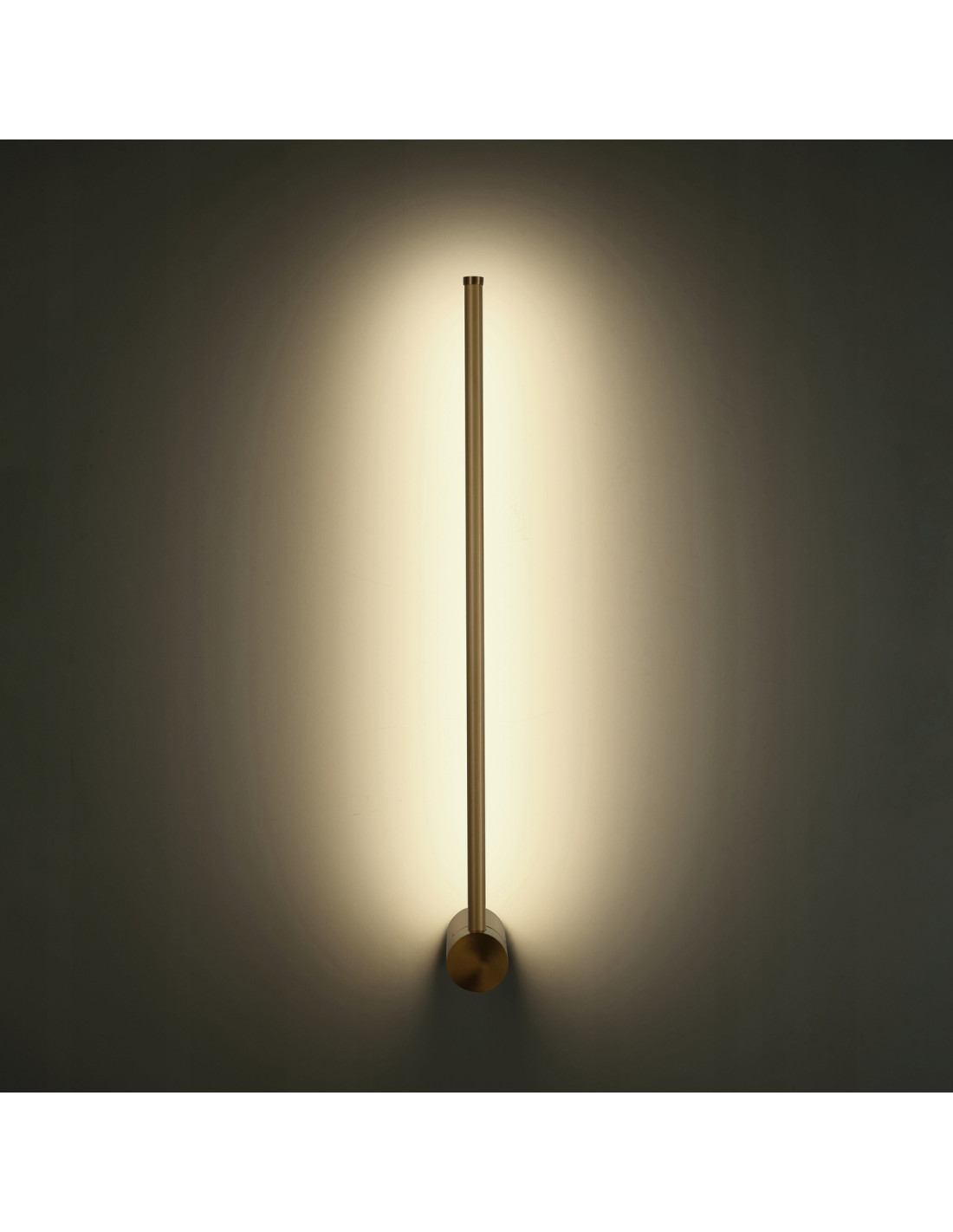 Wykonany z metalu oraz aluminium, kinkiet SPARO charakteryzuje się minimalistycznym designem, który nigdy nie wychodzi z mody. Jego złoty kolor w połączeniu z prostymi liniami nadaje mu elegancji i sprawia, że staje się on wyjątkowym elementem wystroju. Dzięki kompaktowym wymiarom (wysokość: 60 cm, szerokość: 1,5 cm), doskonale komponuje się w różnych aranżacjach wnętrz.