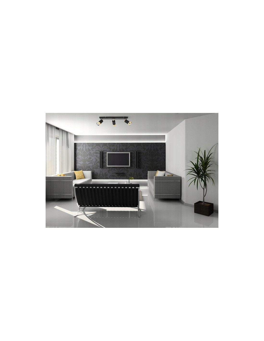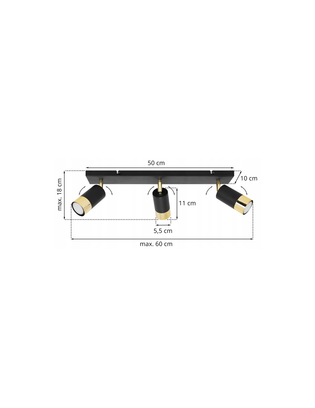 W oświetleniu HUGO zastosowano trzy punkty świetlne, które są kompatybilne z żarówkami typu GU10. Należy pamiętać, że źródło światła nie jest dołączone do zestawu, co daje możliwość doboru żarówek według własnych preferencji. Każda z nich może mieć maksymalną moc 60 W, co pozwala na dostosowanie intensywności oświetlenia do indywidualnych potrzeb użytkowników.