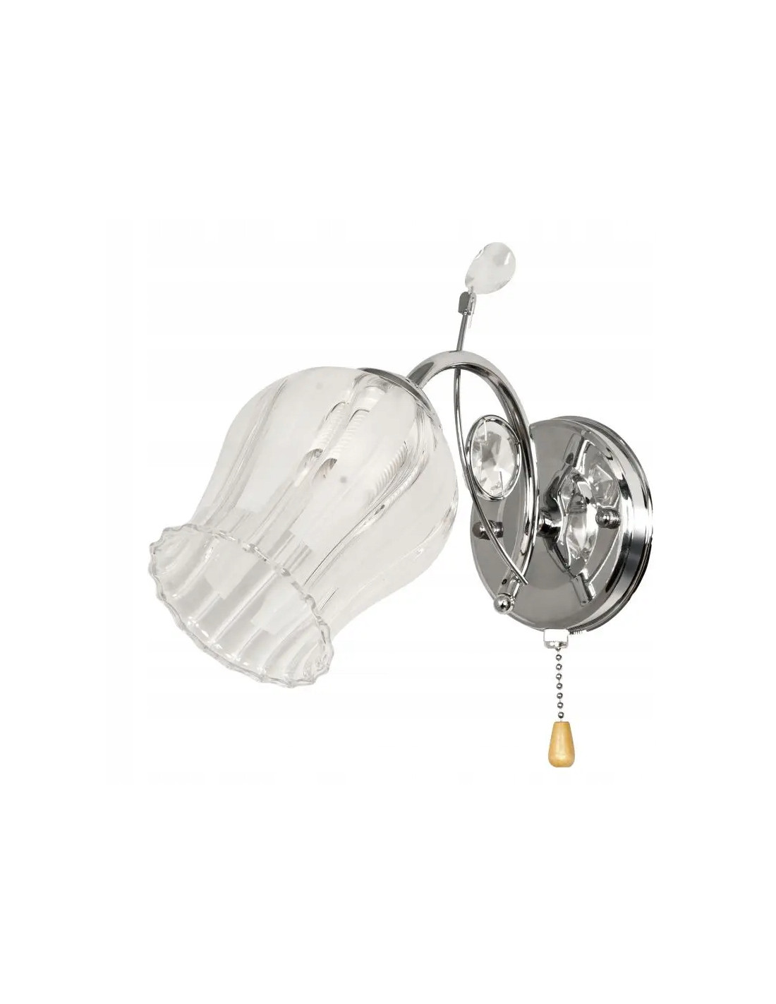 Lampa K-K 1466/1 to ekskluzywny kinkiet, który zachwyca swoim unikalnym designem nawiązującym do delikatności pęku konwalii. Jej oszroniona powierzchnia w połączeniu z kryształowym detalem przyciąga wzrok i wprowadza do wnętrza subtelny klimat. Idealnie sprawdzi się w różnych aranżacjach, dodając im elegancji i szyku.