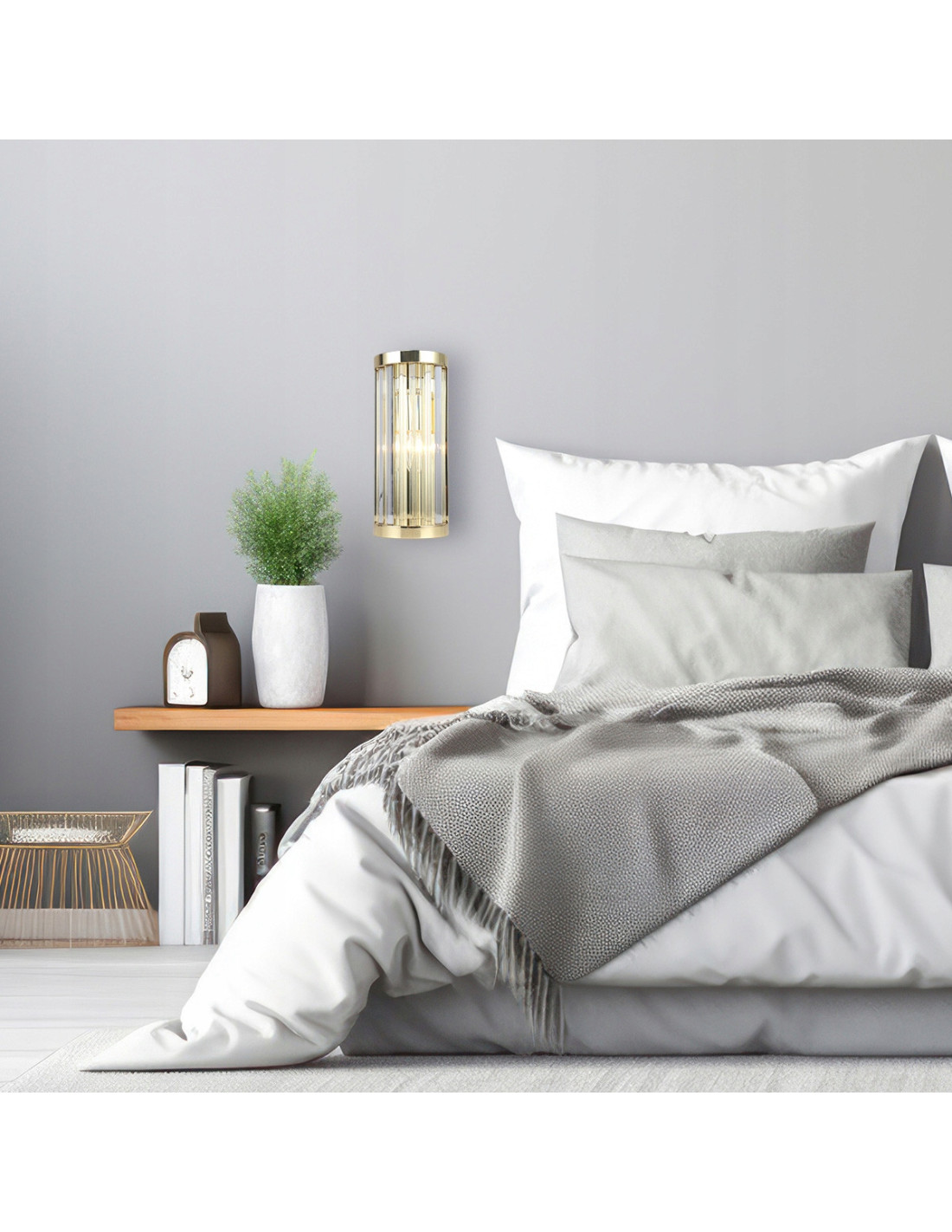 Kinkiet Vetro w kolorze złotym to wyjątkowy element oświetleniowy, który w imponujący sposób łączy w sobie szkło oraz metal. Jego elegancki design doskonale wpisuje się w aranżacje zarówno klasyczne, jak i nowoczesne, w szczególności w stylu glamour. Dzięki swojemu ponadczasowemu wyglądowi, ten szklany kinkiet stanowi idealne uzupełnienie każdej przestrzeni, dodając jej wyrafinowanego charakteru.