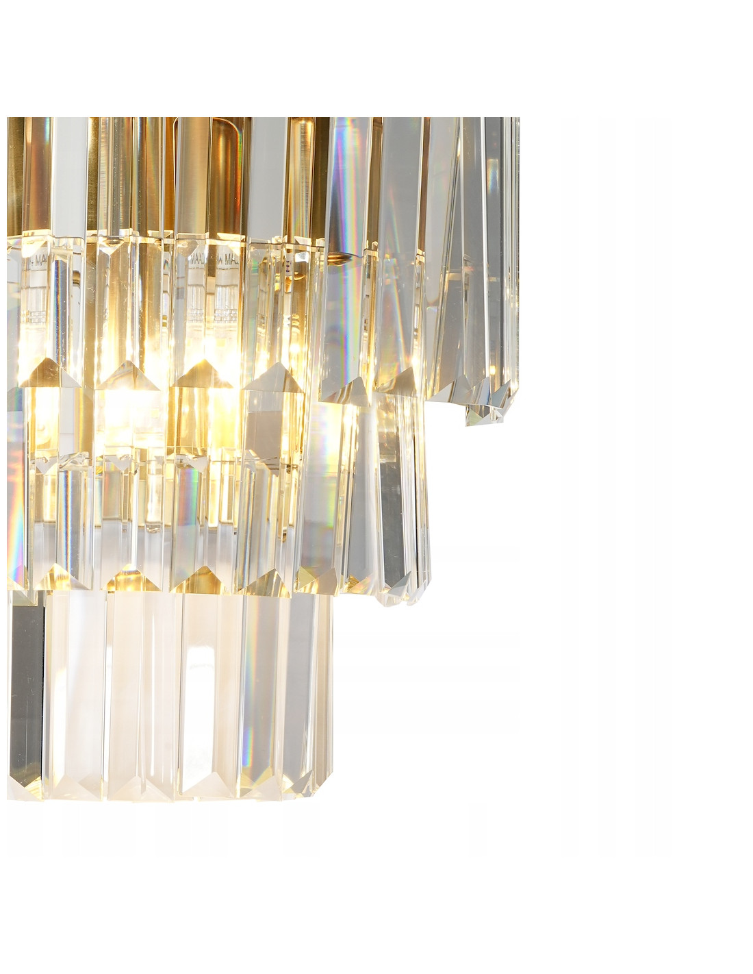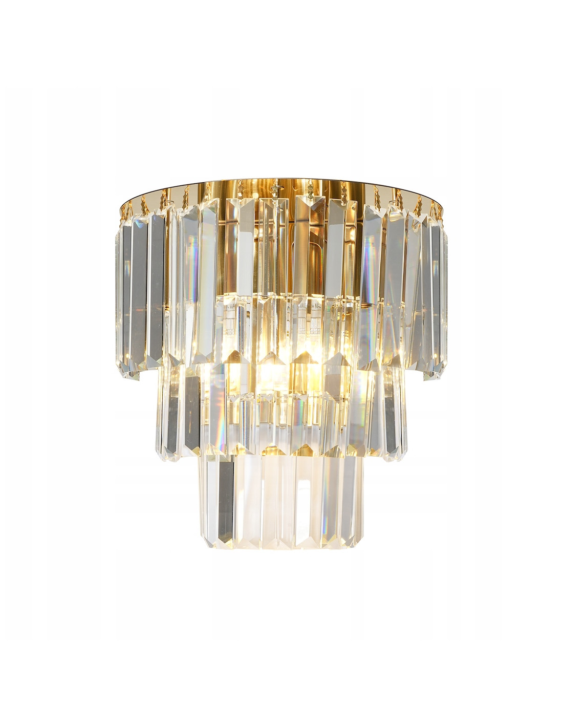 Kinkiet został wykonany z najwyższej jakości materiałów, co gwarantuje jego trwałość i niezawodność. Metalowe elementy w kolorze złotym oraz kryształowe akcenty harmonijnie współgrają ze sobą, tworząc efekt, który nie tylko oświetli przestrzeń, ale również będzie jej dekoracyjnym elementem. Dodatkowo, jego średnica, wynosząca 27 cm, oraz wysokość 26,7 cm sprawiają, że kinkiet doskonale wkomponuje się w różne aranżacje.