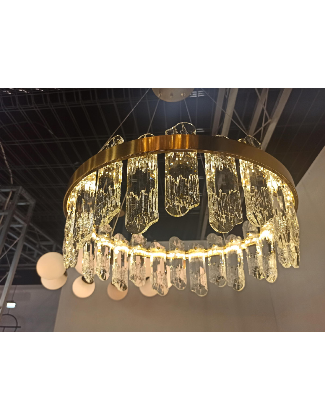 Projekt tej lampy wyróżnia się niezwykłą finezją, gdzie dwa okręgi o różnej średnicy zostały połączone w sposób, który przyciąga wzrok i zapewnia efektowną atmosferę. Kryształowe akcenty w połączeniu z metalową konstrukcją tworzą zjawiskowe źródło światła, które dodaje przestrzeni elegancji i charakteru. Lampy te zdobyły liczne nagrody na targach oświetleniowych, co świadczy o ich wysokiej jakości i atrakcyjnym designie.