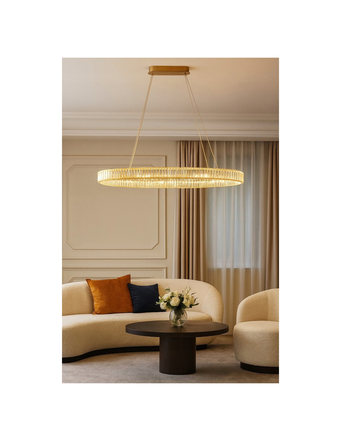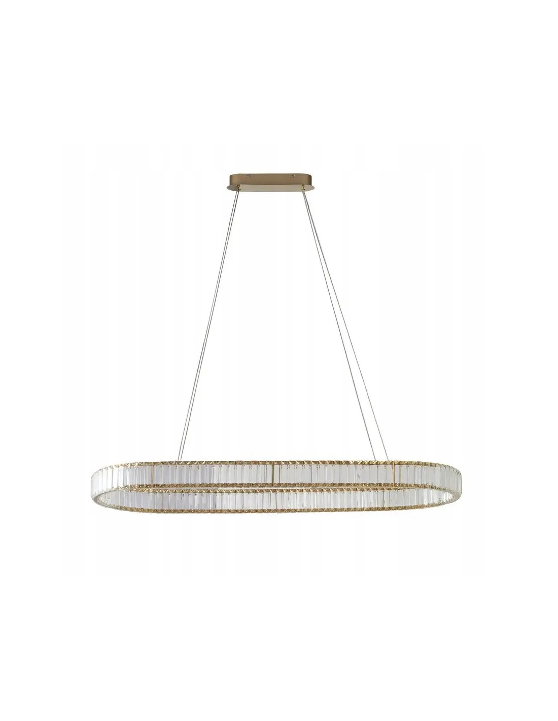 Kryształowa lampa wisząca SPARKING LED to połączenie nowoczesności i elegancji, które idealnie dopełni każde wnętrze. Wykonana z wysokiej jakości aluminium i kryształu, prezentuje wyjątkowy design, który przyciąga wzrok i nadaje wyjątkowego charakteru każdemu pomieszczeniu. Jej złoty kolor dodaje klasy i sprawia, że będzie doskonałym wyborem do salonu, jadalni czy biura.